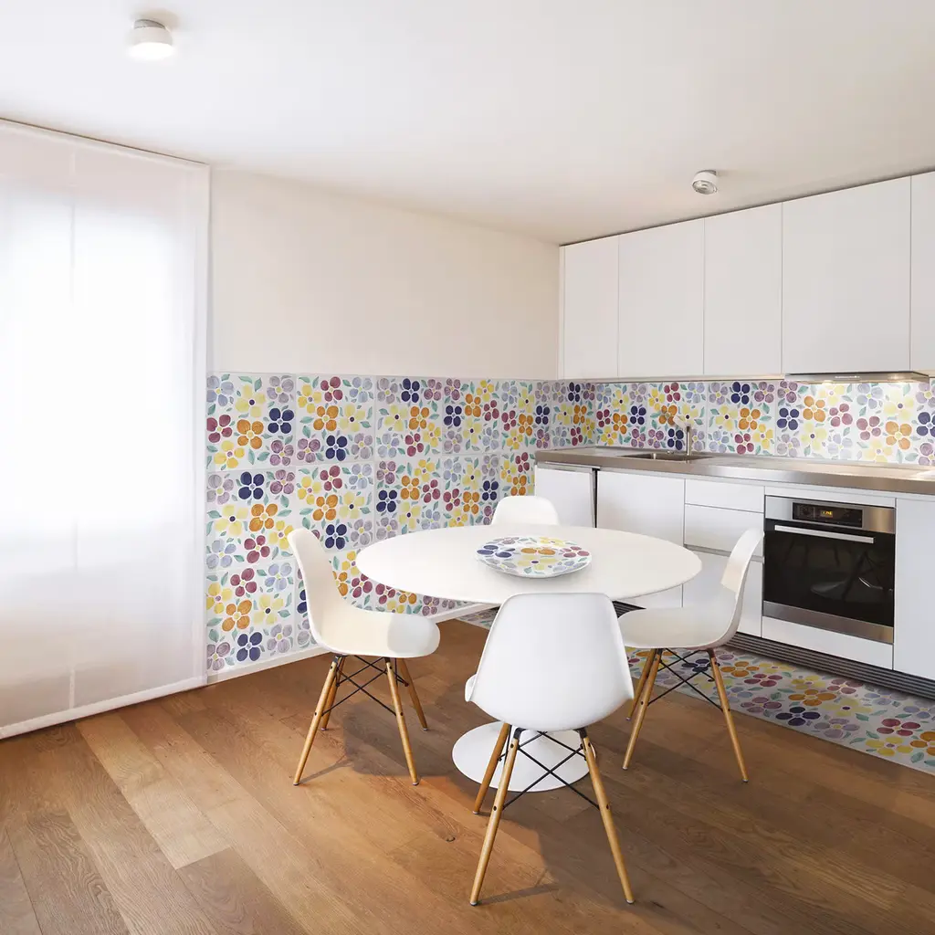 Conjuring images of the picturesque tropical island of Zanzibar, this hand-painted tile features a kaleidoscope image of bold colorful flowers, on a slightly uneven surface. Class PEI 5 rated for durabilty in extra-heavy traffic areas, this tile will elegantly decorate the floors of an elegant private villa or walls of a summer apartment. Please contact the Concierge for additional technical details.