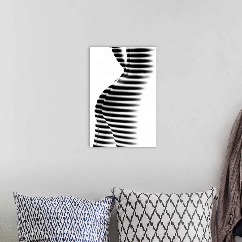 Abstract photo of a nude with black and white stripes, resembling a zebra.