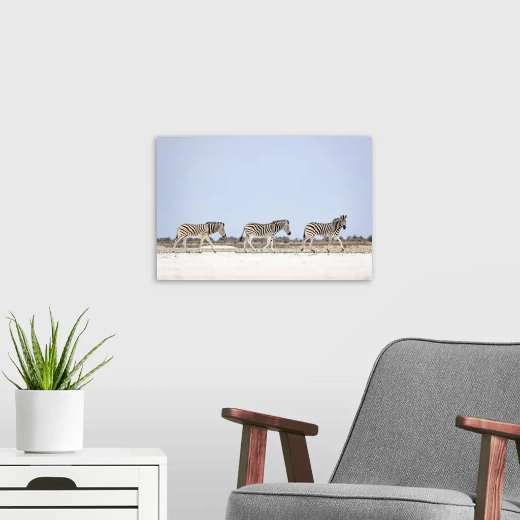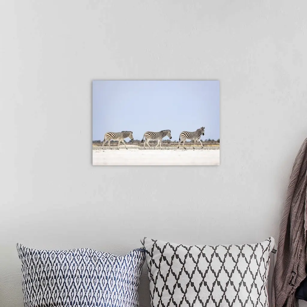 Zebra Herd On Salt Pan, Makgadikgadi Salt Pans, Botswana wall art for home and office decor. Discover canvas art prints, photos, mural, big canvas art and framed wall art in GreatBigCanvas.com's varied collections.