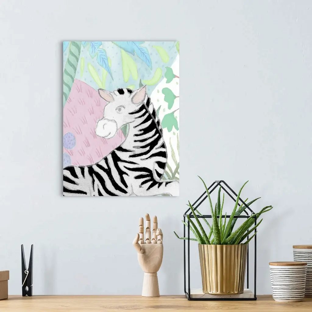 Zebra In The Tropics wall art for home and office decor. Discover canvas art prints, photos, mural, big canvas art and framed wall art in GreatBigCanvas.com's varied collections.