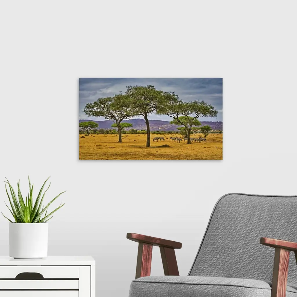 Common zebra (Equus quagga) on the savannah; Tanzania