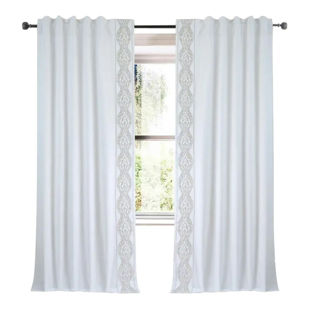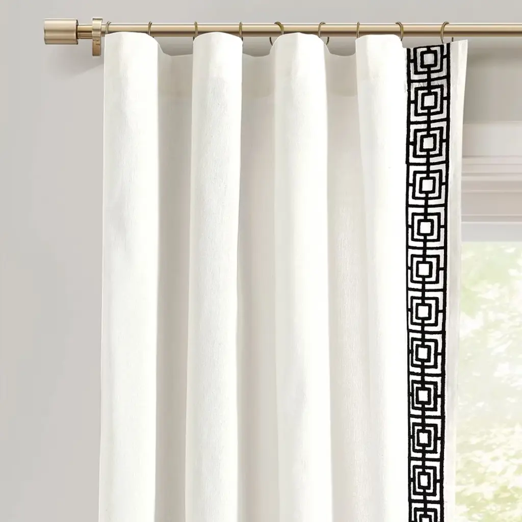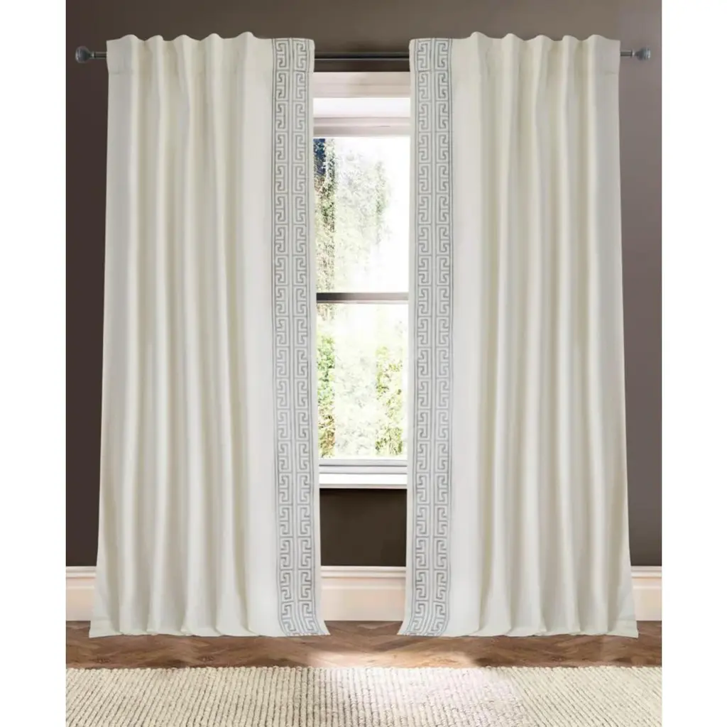 Ivory hues beautifully embroider the trim of these drapes. From bedroom to living spaces, these panels deliver beautiful framing or coverage for windows.