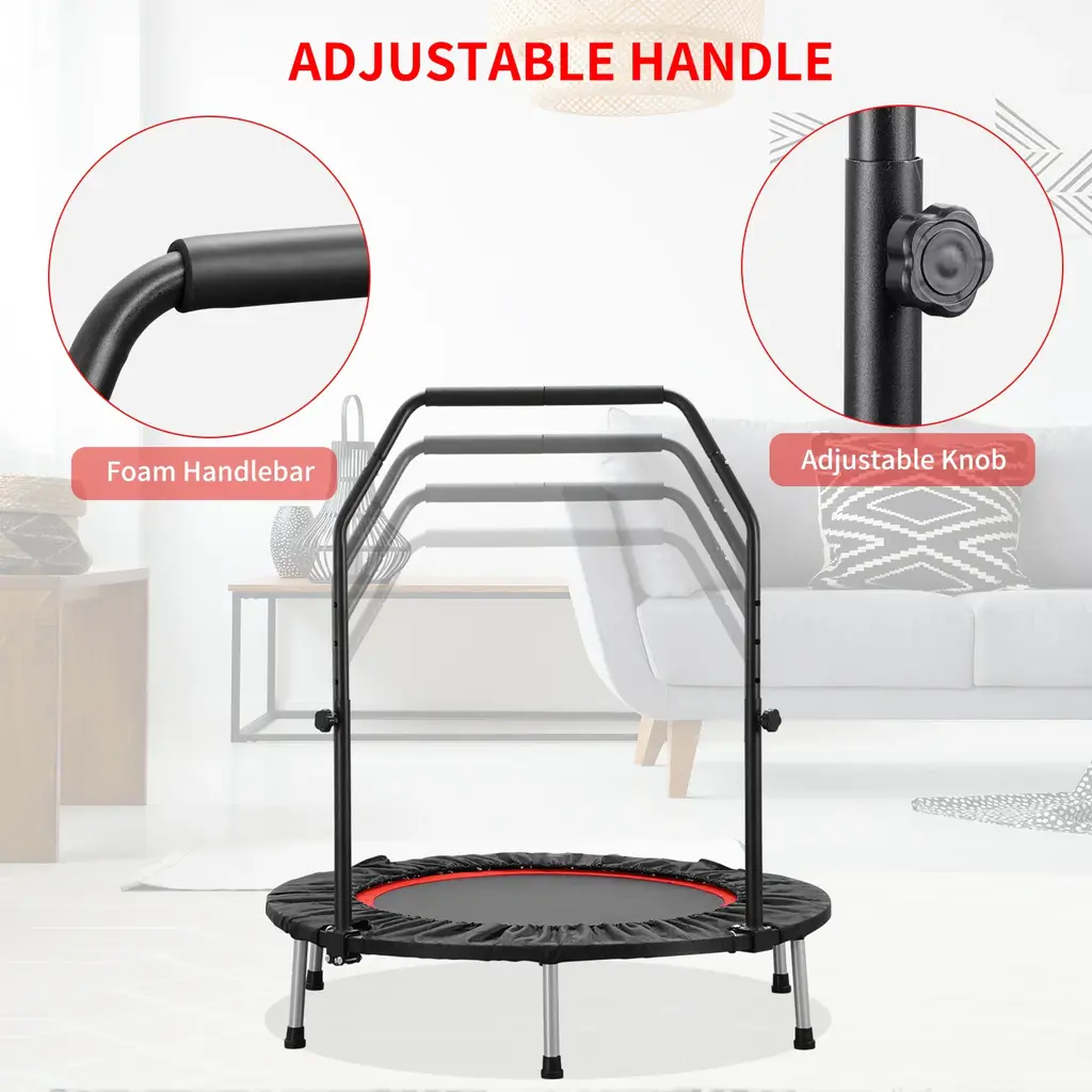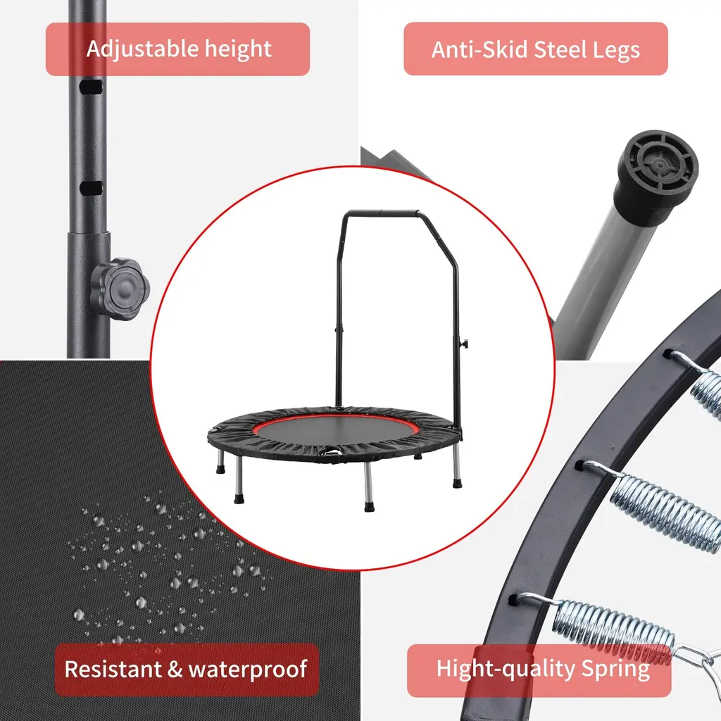 Zenova 40inch Mini Trampoline Foldable Exercise Trampoline With Adjustable Foam Handle For Kids & Adults - Red