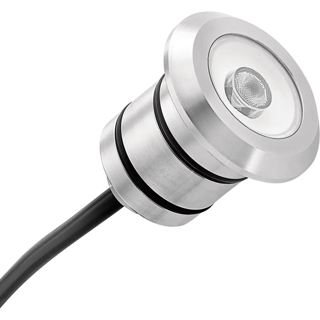 Source: LED 3x250mAFinish: Sat in-finish steelSeries of walkover recessed spots (IP 67) with frame in stainless steel AISI 316L, heat sink in aluminum and neoprene cable 30 cm. Available in round and square versions. Mounting with recessed box or in plaster boards by means of a specific accessory. Finish: AluminiumSource: LED 3x250mA
