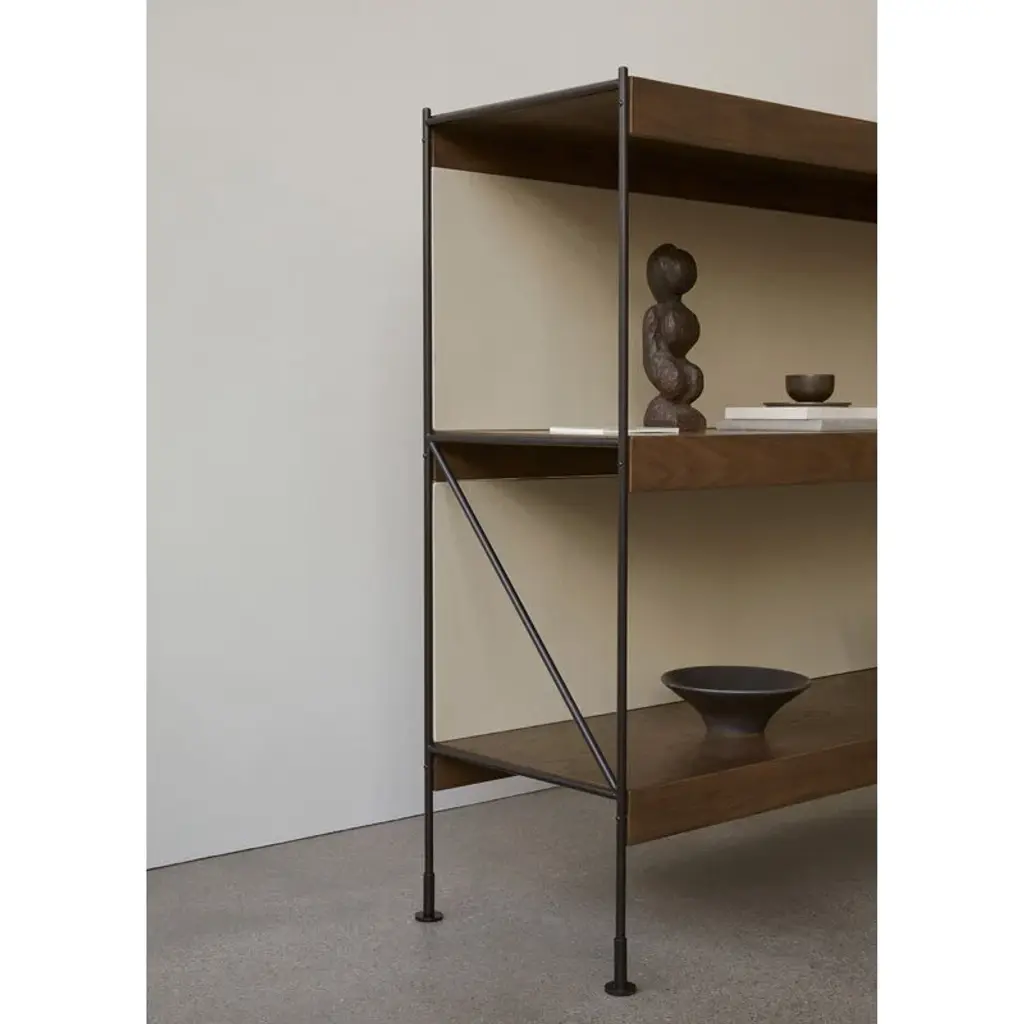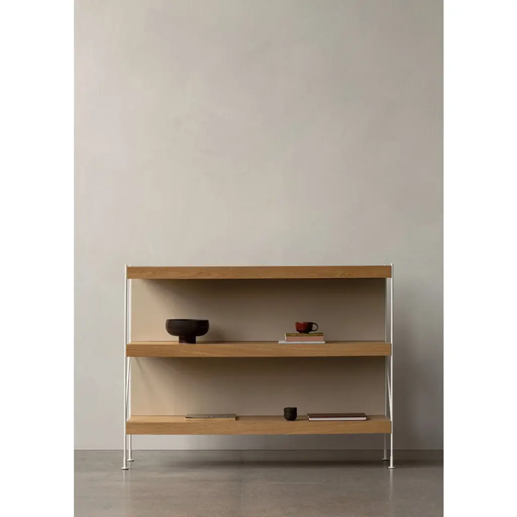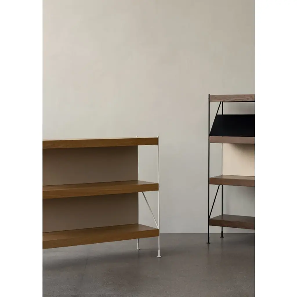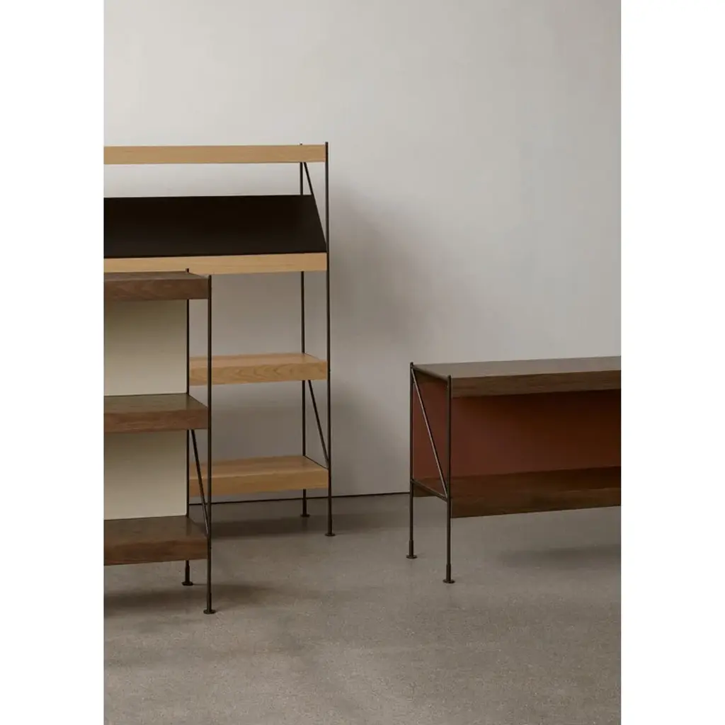The Zet Storage System back panel complements the collection’s shelves and allows you to shape your dream bookshelf in a flash. Available in a variety of hues, the back panel adds a complementing or contrasting block of color to the back of the shelf – the finished look is up to you. The Zet Storage System by Audo Copenhagen is a minimalist shelving system characterized by high-quality materials and a timeless design expression. Created by German design studio Kaschkasch, the shelving system is based on two main elements: wooden shelves and a sleek frame in metal. The latter is finished with diagonal struts that form the letter Z, giving the system its name, Zet Storage System. The system’s shelves are designed so that they are easy to assemble, disassemble and move, ensuring a long service life and the freedom to place them in a different room, should you wish to change your décor. Airy and minimalistic, the Zet Storage System effortlessly adapts to a variety of environments and interior decoration styles.