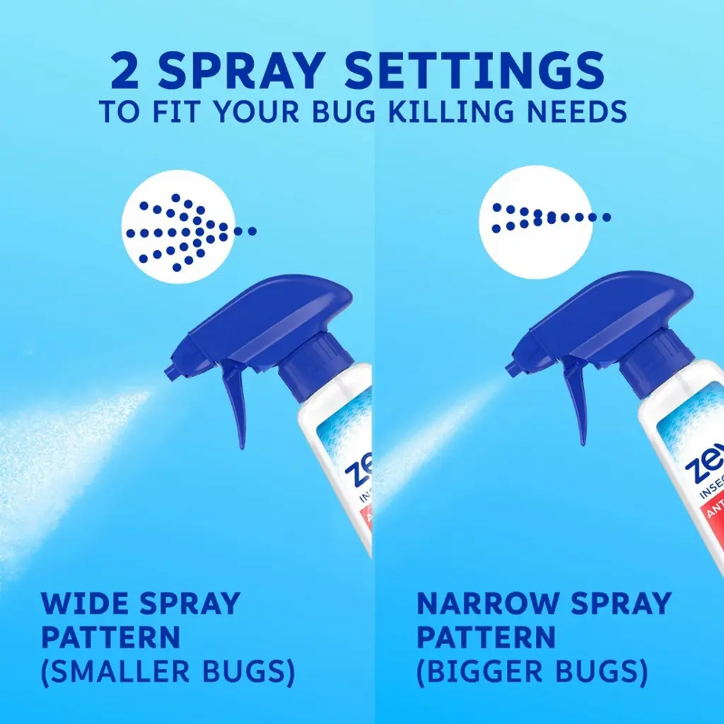 evo Instant Action Multi-Insect Killer for ants, roaches, flies, fruit flies, gnats, spiders and crickets uses an improved formula to kill on contact and clean up what bugs leave behind. Powered by cornmint and rosemary essential oils, it is safe for use around people and pets (when used as directed). Zevo Instant Action Multi-Insect Killer has no chemical odor or messy residue . Every spray of improved Zevo contains bug-deadly essential oils AND cleaning surfactant so you can simply spray to kill and wipe to clean. Great for use in indoor and outdoor living spaces. Do not use on surfaces where food is prepared, stored, or eaten. Don't let a bug problem become a big problem. Take action at the first sign of a bug or bug problem by grabbing your Zevo Instant Action Multi-Insect Killer today.