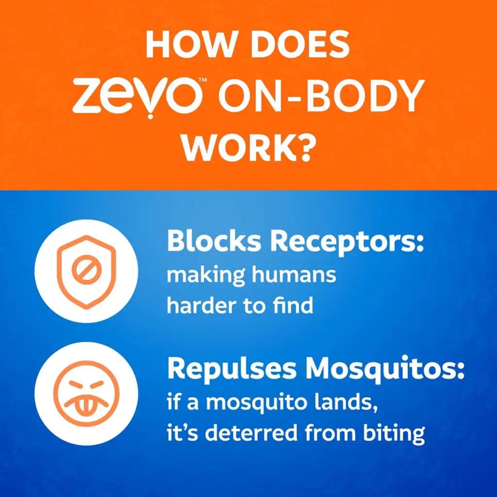 Don't let bugs get in the way of your outdoor adventure. Zevo On Body Mosquito & Tick Repellent provides protection for the whole family. The lightweight, non-sticky formula feels good on your skin and it's odorless, so you don't have to bring the smell of bug spray with you as you explore the outdoors. With a quick, no touch application, Zevo On Body aerosol enables fast, even application that dries quickly. It provides up to 8 hours of protection against mosquitoes and ticks without a greasy feel or overpowering scent - perfect for a day in the backyard, walking your dog, enjoying a hike in the woods, or a night of camping. Keep out of reach of children. See the label for other precautions and usage instructions.