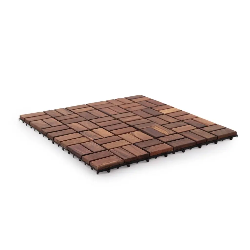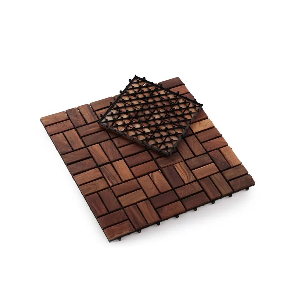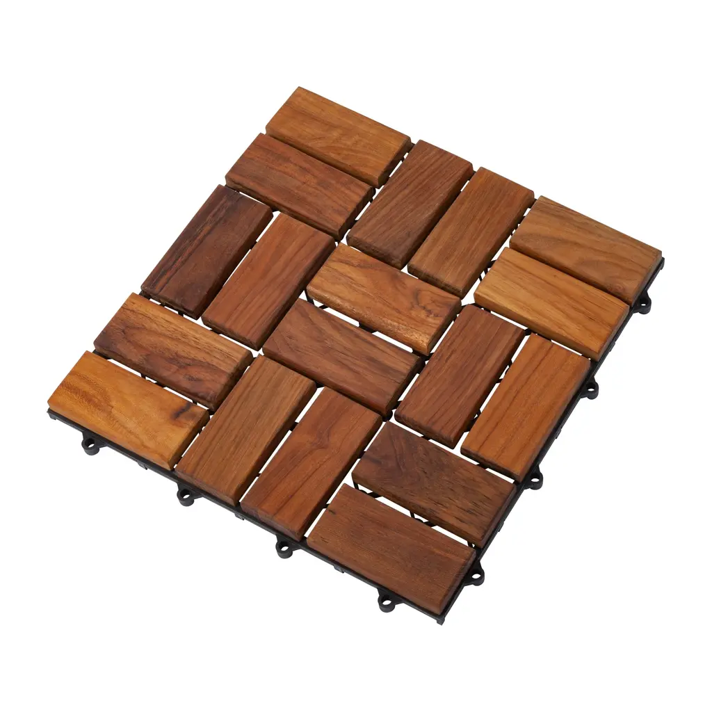 Zig Zag Teak Wood 18-Slat Square Interlocking Tile Set (Pack Of 10) - Pack Of 10