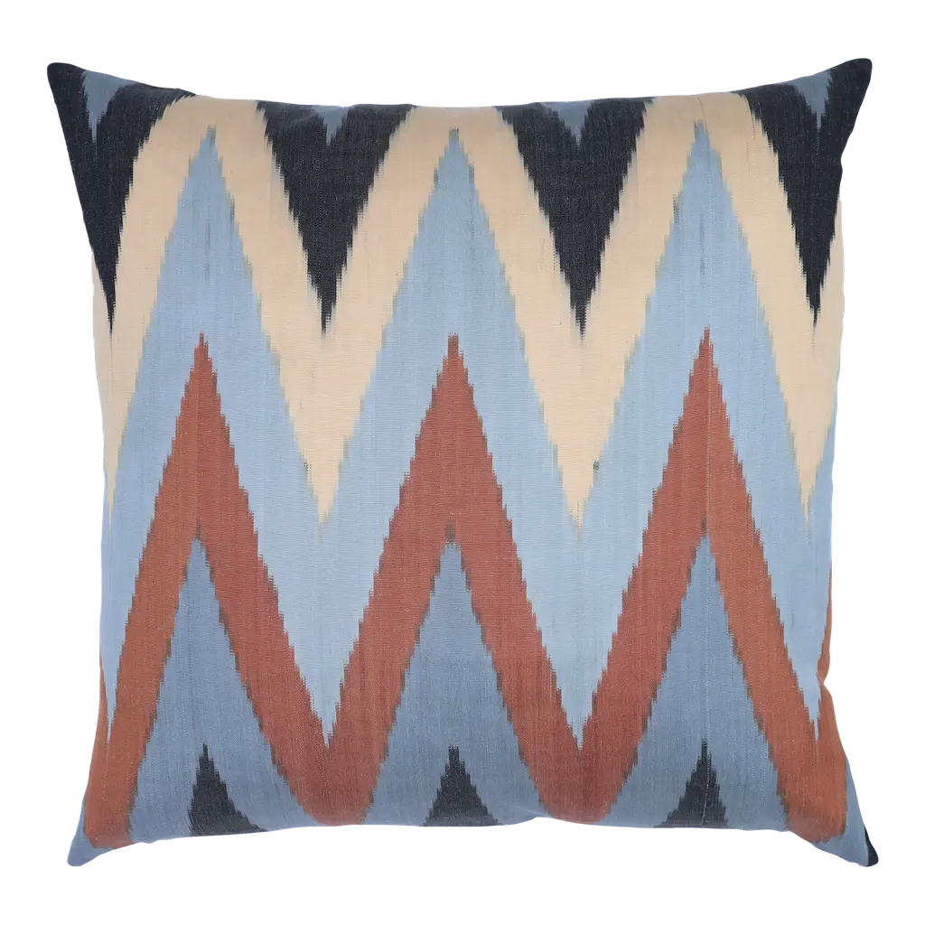 Elevate home décor with the Zigzag Ikat Cushion. This striking cushion showcases a dynamic zigzag pattern that adds depth and character to any setting. Its vibrant blue hues, complemented by neutral undertones, create a versatile piece suitable for a variety of interiors, from modern to bohemian. Designed to provide both comfort and aesthetic appeal, this cushion serves as a perfect accent for sofas, chairs, or beds. The size ensures it can stand alone or work harmoniously within a layered cushion arrangement. Ideal for introducing a touch of sophistication and style into any living space, the Zigzag Ikat Cushion is a statement piece that reflects contemporary trends in home décor.