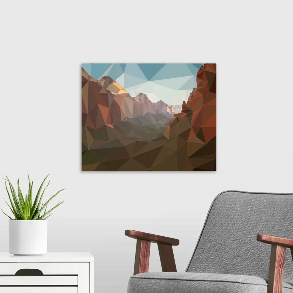 Canyonlands in Zion National Park, Utah, rendered in a low-polygon style.