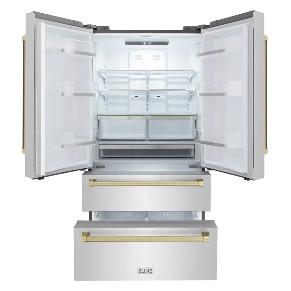 Zline 36 In. 28.9 Cu. Ft. Standard-Depth French Door External Water Dispenser Refrigerator With Dual Ice Maker In Fingerprint Resistant Stainless Steel