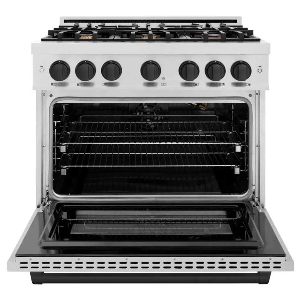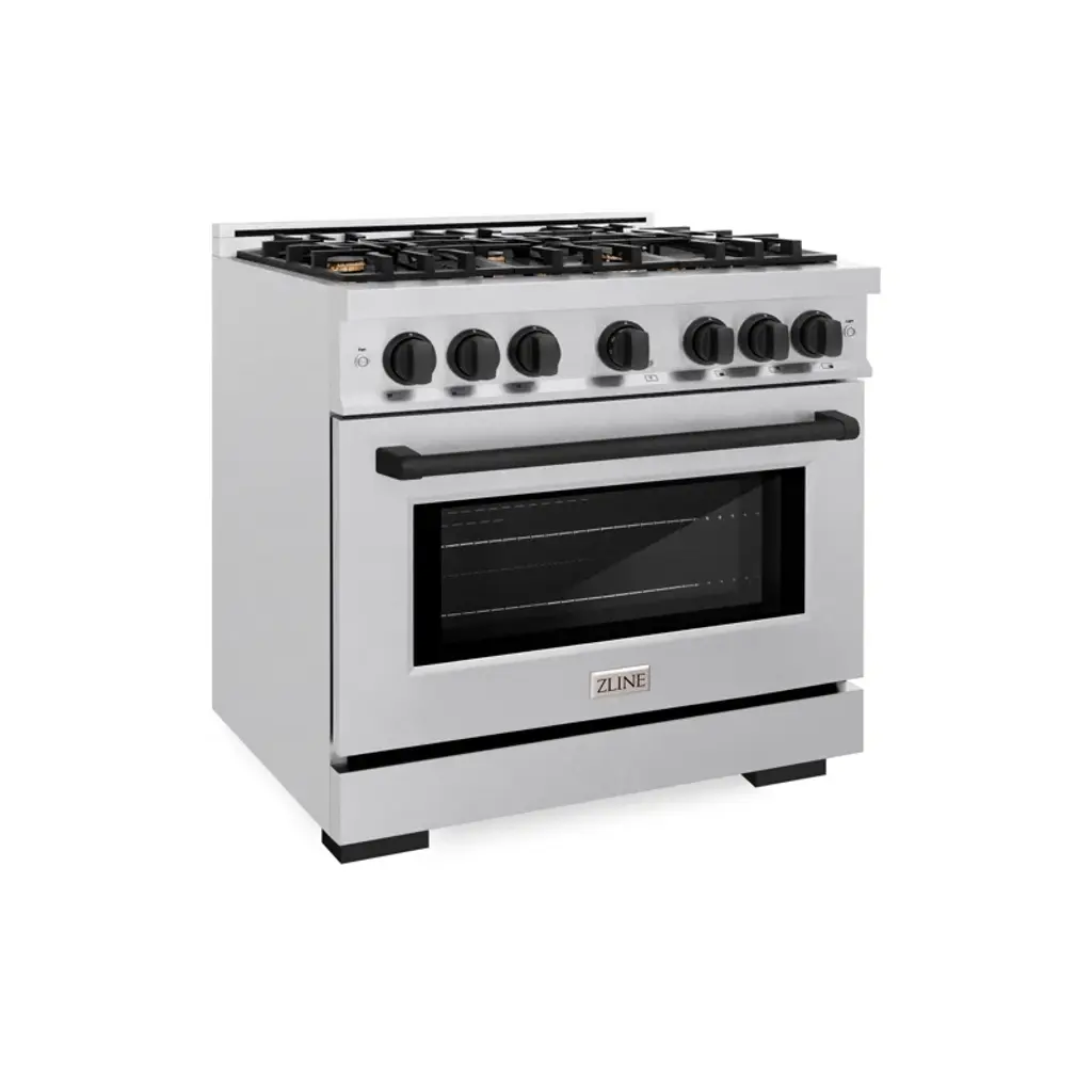 Luxury isn’t meant to be desired - it’s meant to be attainable. The ZLINE Autograph Edition 36 in. 5.2 cu. ft. Select Gas Range with 6 Burner Cooktop and Convection Gas Oven in DuraSnow® Stainless Steel and Matte Black Accents (HGRSZ-36-MB) combines the elegance of a hand-finished porcelain gas cooktop with 6 Italian-made auto-reignition burners, a gas convection oven with an energy-efficient cooling fan to ensure quiet operation, a Horizon oven door window design, and stunning matte black knobs and handle allowing you to master every meal. With a modern, timeless style and refined functionality, ZLINE Select Gas Ranges are masterfully crafted to deliver an elevated culinary experience.