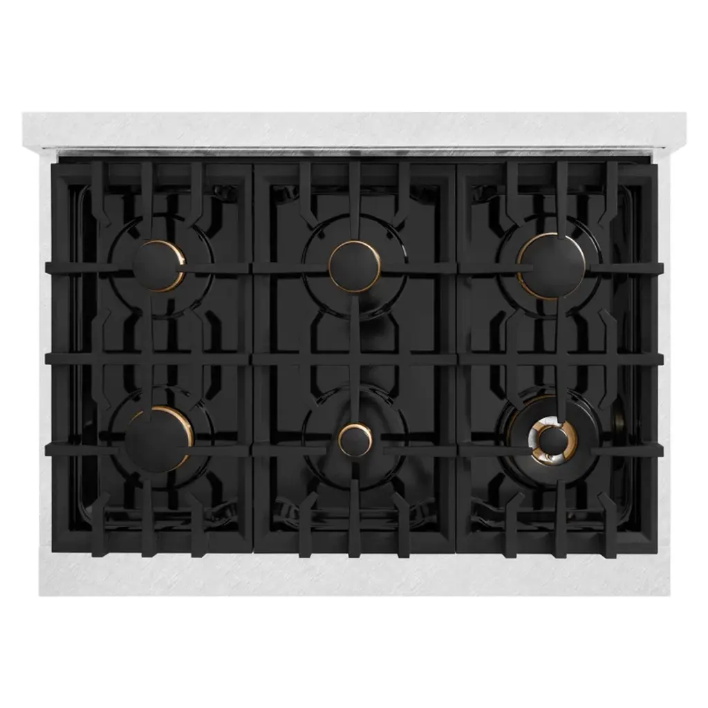 Zline Autograph 36" Select Durasnow Gas Range W/ 6 Burners & Bronze Accents