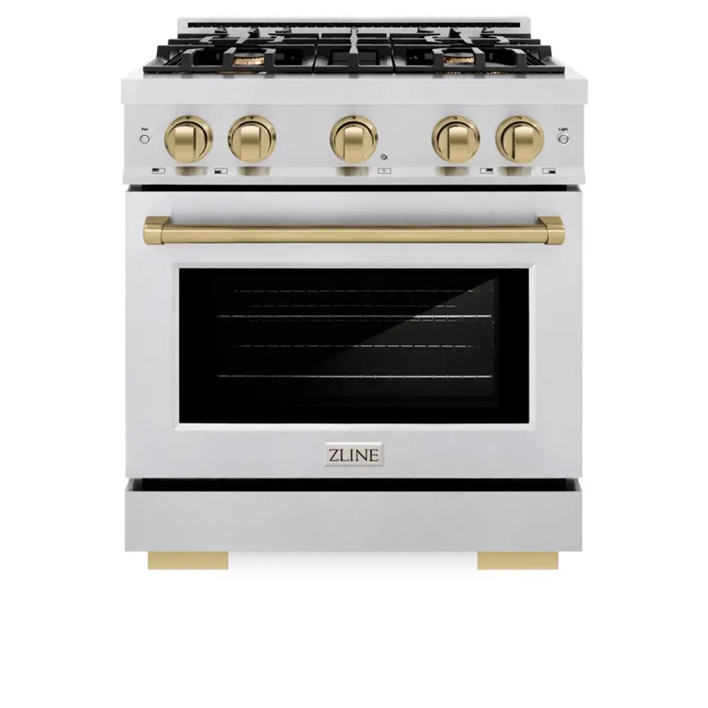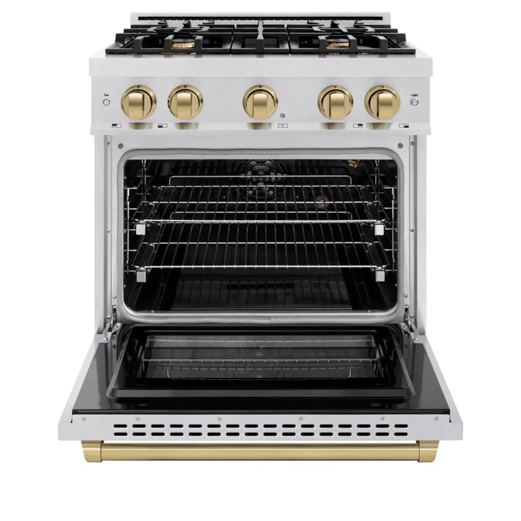 Zline Autograph 36" Select Gas Range W/ 6 Burners W/ Black Door & Polished Gold Accents