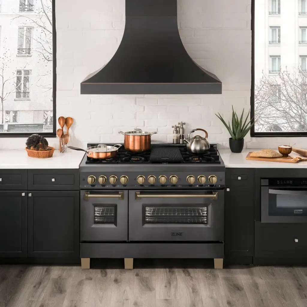 Zline Autograph 48" Legacy Dual Fuel Range In Black Stainless Steel