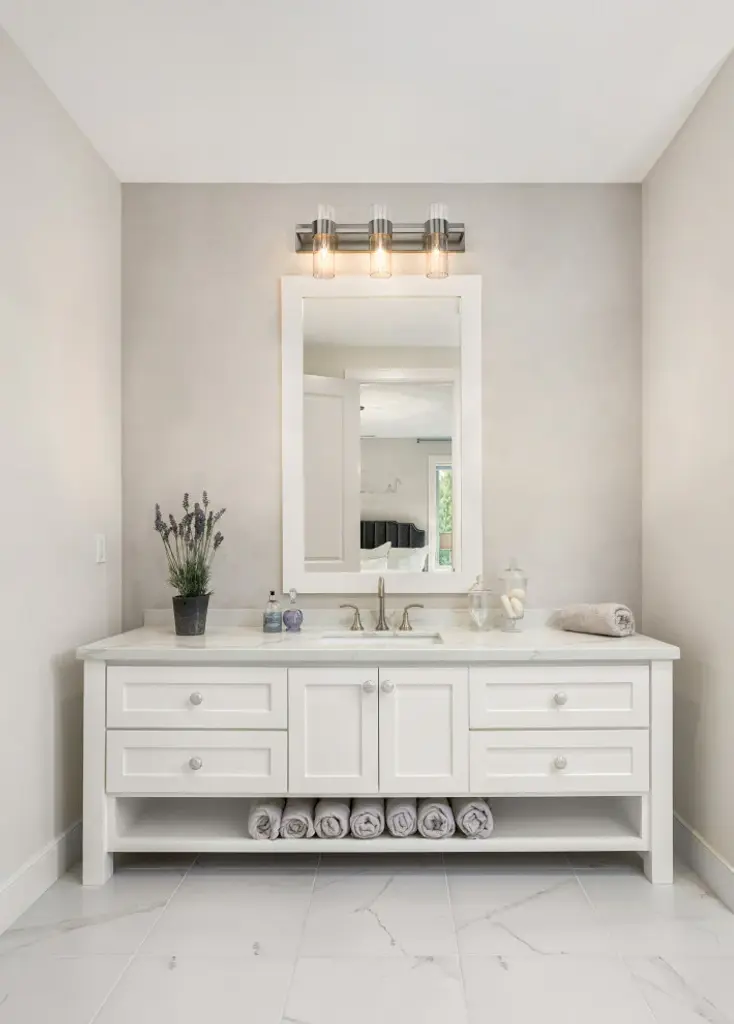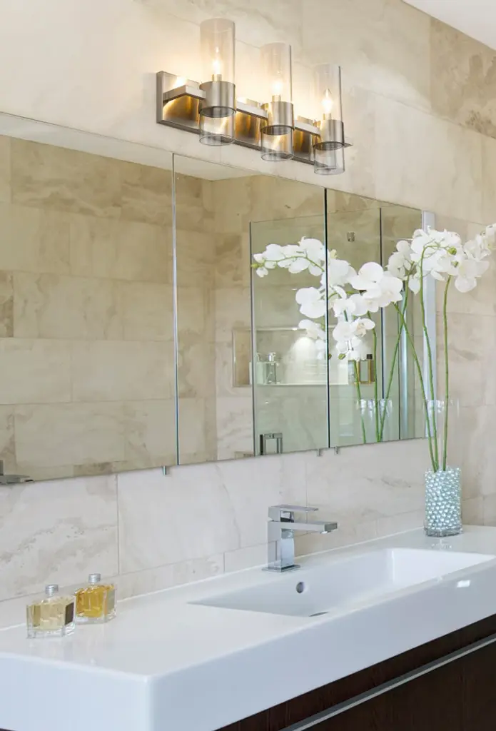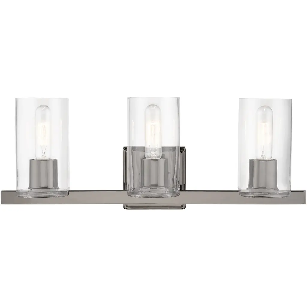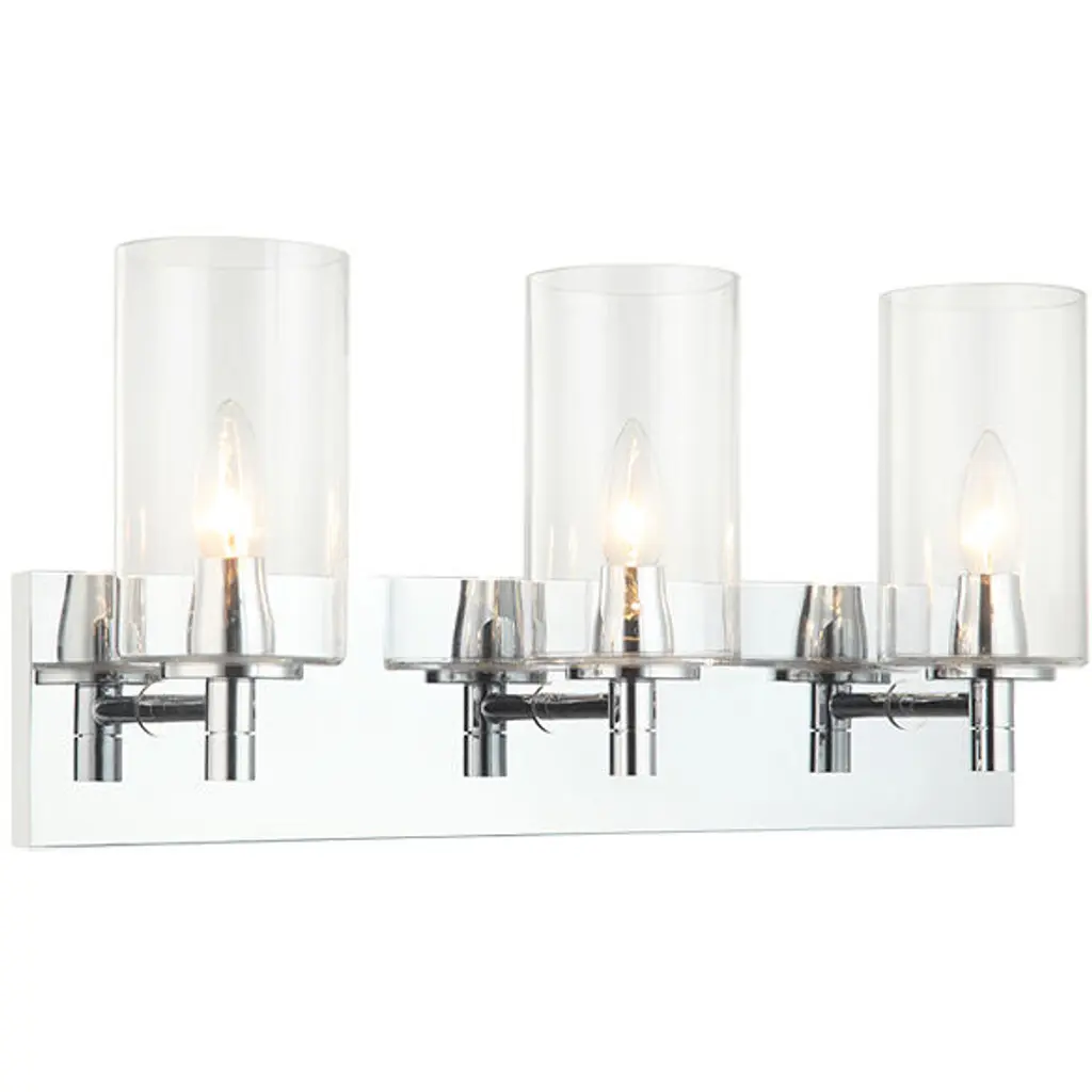 With jewelry-like cuffs clasping the transparent glass cylinders surrounding the light source, the Lawson series balances its boldness with the slender aesthetic of the glass to create a timeless look that can suit a variety of design environments. Available in Rubbed Brass, Polished Nickel, Brushed Nickel, and Matte Black finishesMinimalist modern style carries through in this chic linear contemporary vanity light, transforming en suite bathrooms and spacious powder room into a sleek and restful retreat. An elongated steel plate suspends three lantern-like clear glass cylinder shades, each held in place by a wide brushed nickel ring that adds a luxe metallic touch. Mirror existing bathroom hardware and fixtures and create substantial illumination with this three-light vanity light, mounting it above a decorative bathroom mirror over a countertop or dressing area.Style : Modern, transitional, sleek, linear, retro restoration, contemporaryBulbs Included : NoENERGY STAR : NoUL CLASSIFICATION : CUL/cETLuUL APPLICATION : DampActual Length/ext : 4.75"Frame Finish : Brushed NickelFrame Material : SteelShade Finish/Color : ClearShade Material : GlassBulb Wattage : 60Number of Bulbs : 3Bulb Base : CandelabraDimmable (Yes/No) : YesActual Width : 25"Actual Height : 11"Backplate Dimensions : 25" W x 4.7" HActual Weight : 9 lbs