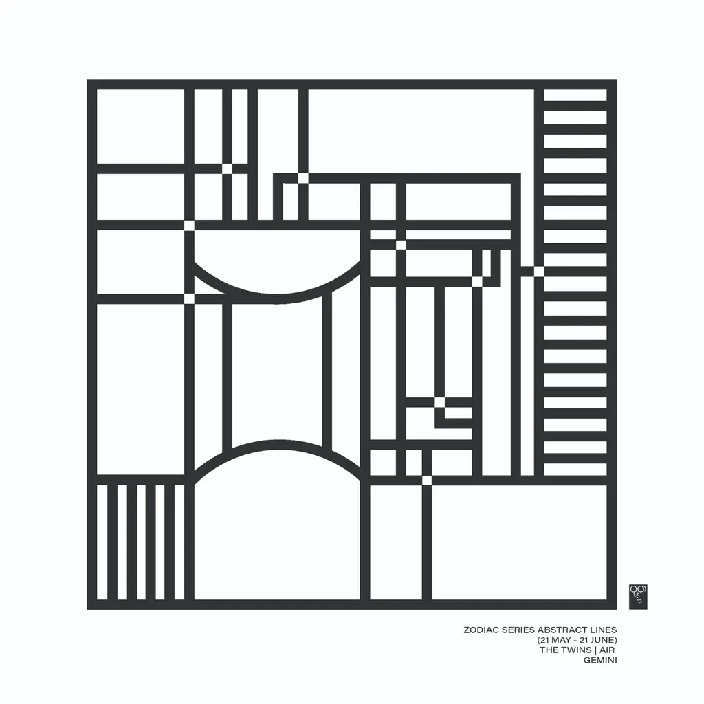 Zodiac Series Abstract Lines - Gemini Print - Black
