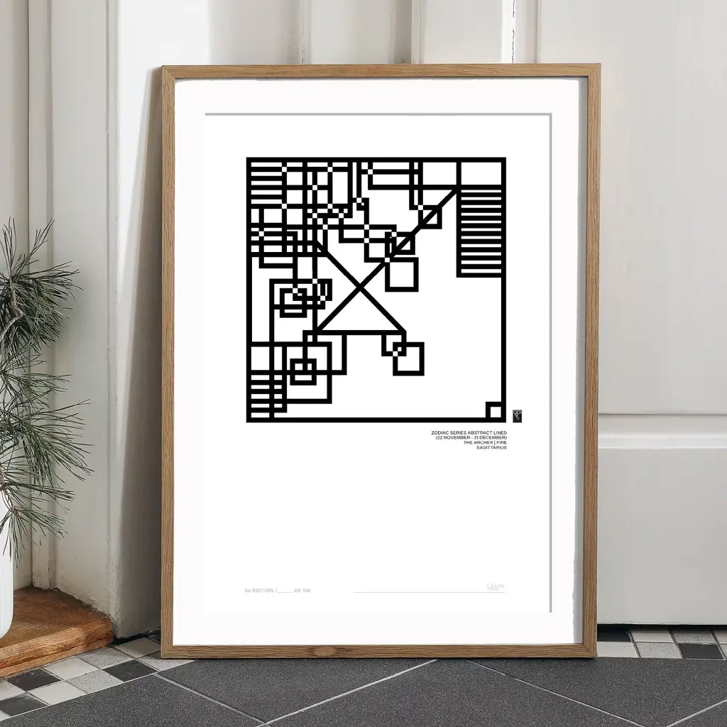 Zodiac Series Abstract Lines - Sagittarius Print - Black