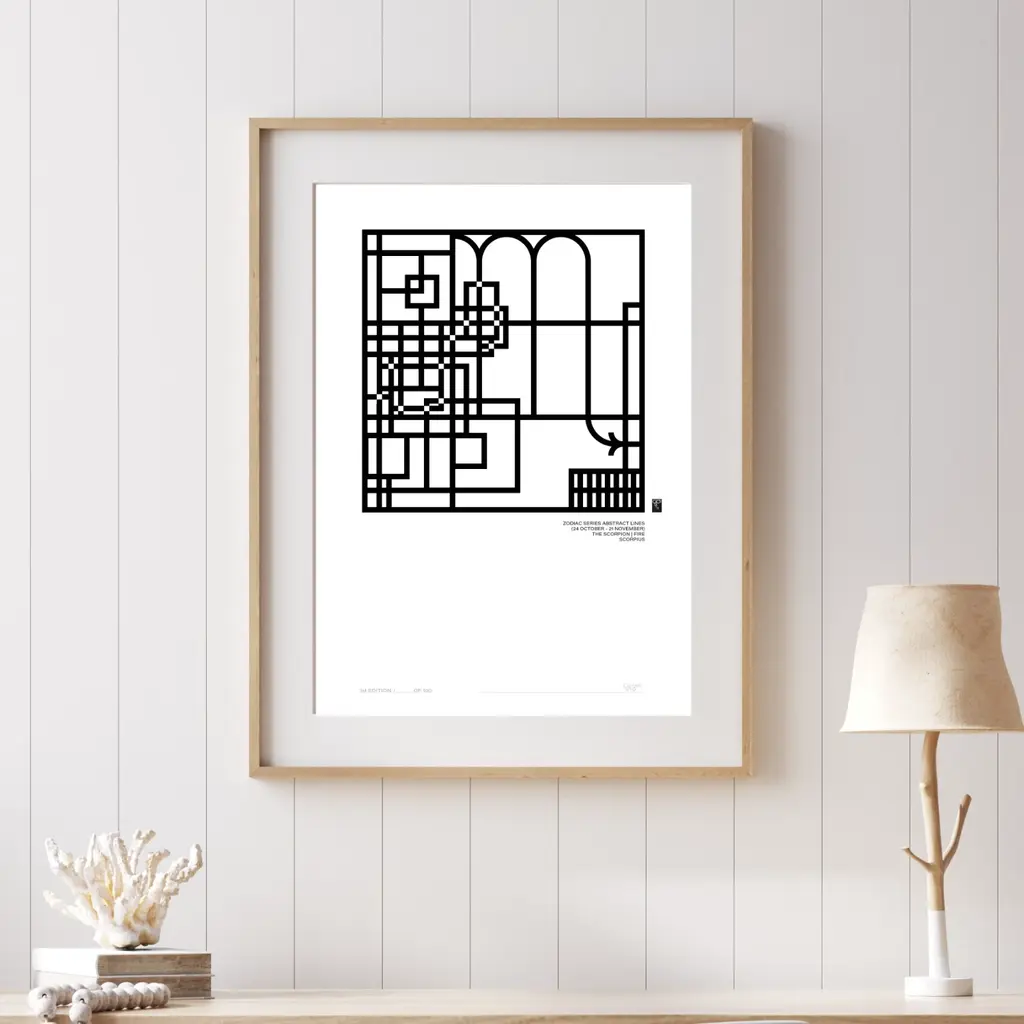 Zodiac Series Abstract Lines - Scorpius Print - Black