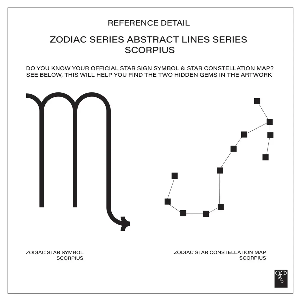 Take a journey through the stars with the Zodiac Series Abstract Lines Scorpius - Limited Edition A3 Print.This captivating print combines the Scorpius constellation of stars and symbol with a bold and contemporary abstract design. The enigmatic question "What can you see?" adds an extra layer of intrigue to this stunning work of art.WHAT CAN YOU SEE?There are 2 hidden gems to be found within the lines and square dots.1: The Scorpius Star Sign Symbol2: The Scorpius Star Constellation MapWhat do they look like? Check out the reference page.Happy looking.Limited 1st Edition of 100.