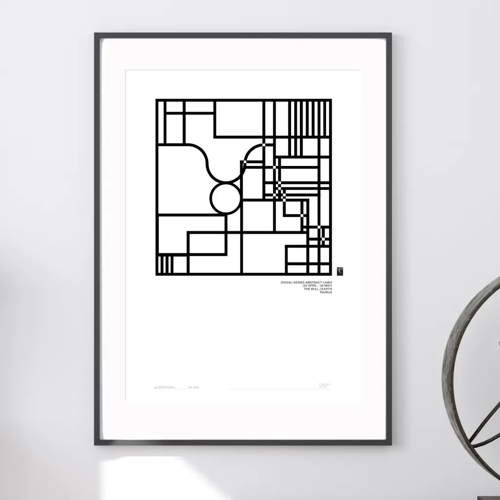 Zodiac Series Abstract Lines - Taurus Print - Black