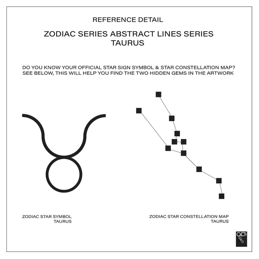 Ground yourself in the beauty of the stars with the Zodiac Series Abstract Lines Taurus - Limited Edition A3 Print.This breathtaking print features the Taurus constellation of stars and symbol, hidden within a contemporary and iconic abstract design. The enigmatic question "What can you see?" adds an extra layer of intrigue, inviting you to explore the hidden beauty within.WHAT CAN YOU SEE?There are 2 hidden gems to be found within the lines and square dots.1: The Taurus Star Sign Symbol2: The Taurus Star Constellation MapWhat do they look like? Check out the reference page.Happy looking.Limited 1st Edition of 100.