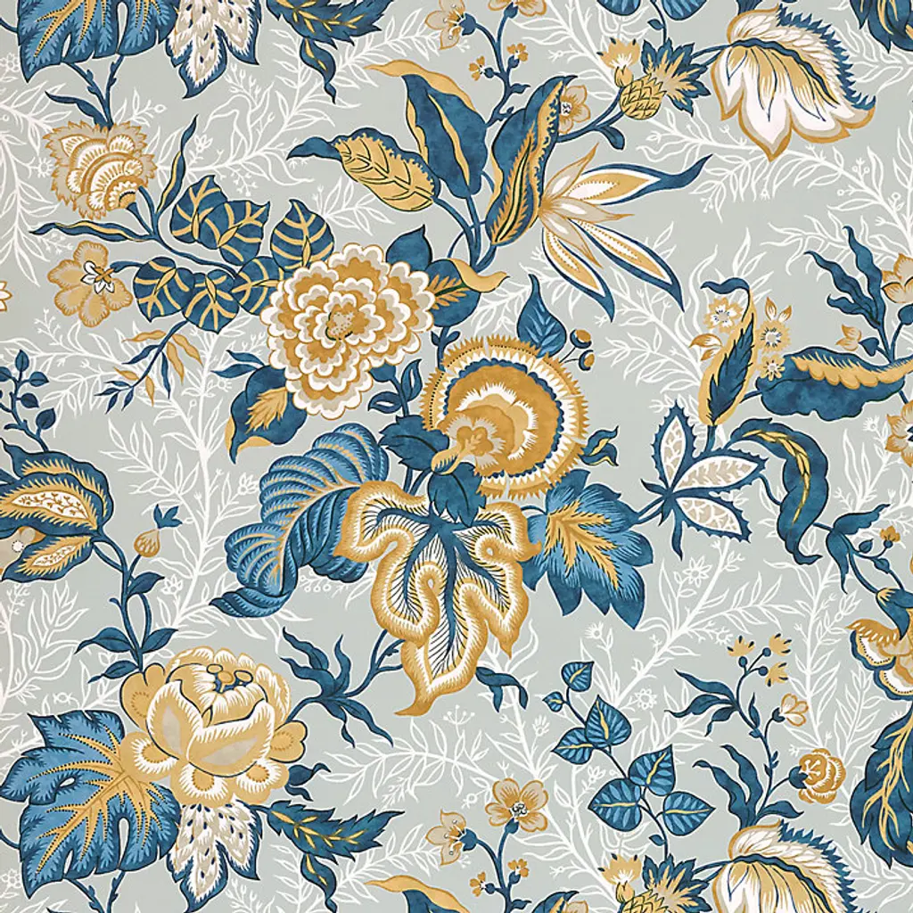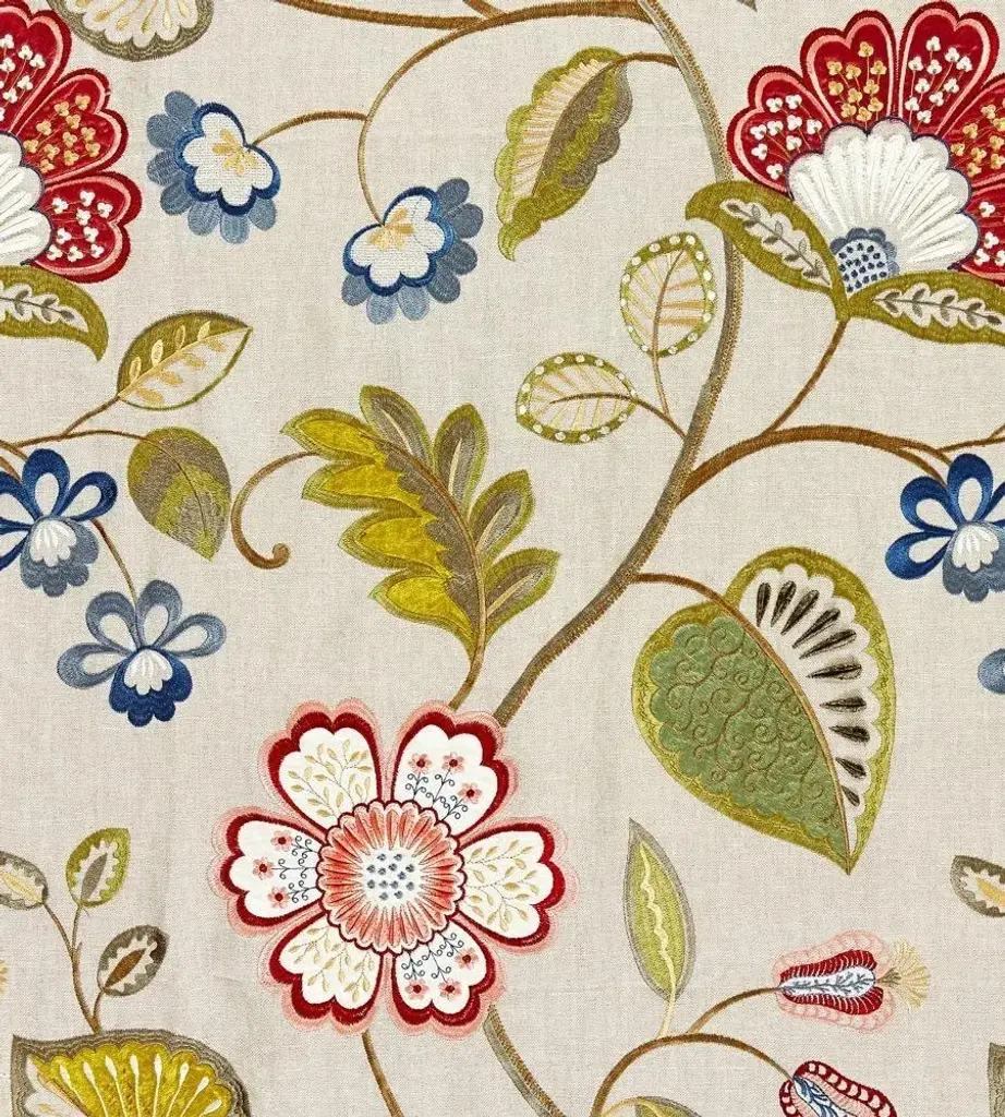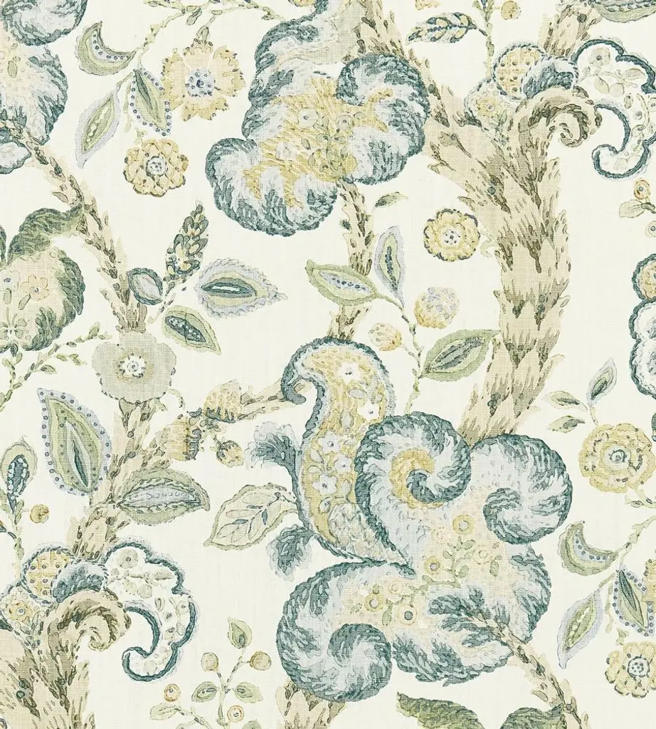 Over-sized 16th century motifs of stylised pomegranates and fruit are arranged on this linen-silk blend fabric and depicted in an embroidered trail featuring linen appliqué on a silk background. This striking design in tranquil colourways was adapted from the Winterbourne print. 35% Silk 33.5% Viscose 31.5% Linen. Sold by the yard. Part of the WINTERBOURNE FA Collection. Vertical Repeat: 30.3149606299213 Horizontal Repeat: 51.9685039370079 Aftercare Codes: No Machine Wash - SDC / No Ble / No tumb / C Iron / SDC (Spec) This item is non-refundable, but swatches are available for purchase. Colors can vary from screen to screen; we recommend ordering a swatch before placing your full size purchase. For any questions, please reach out to swatches@chairish.com