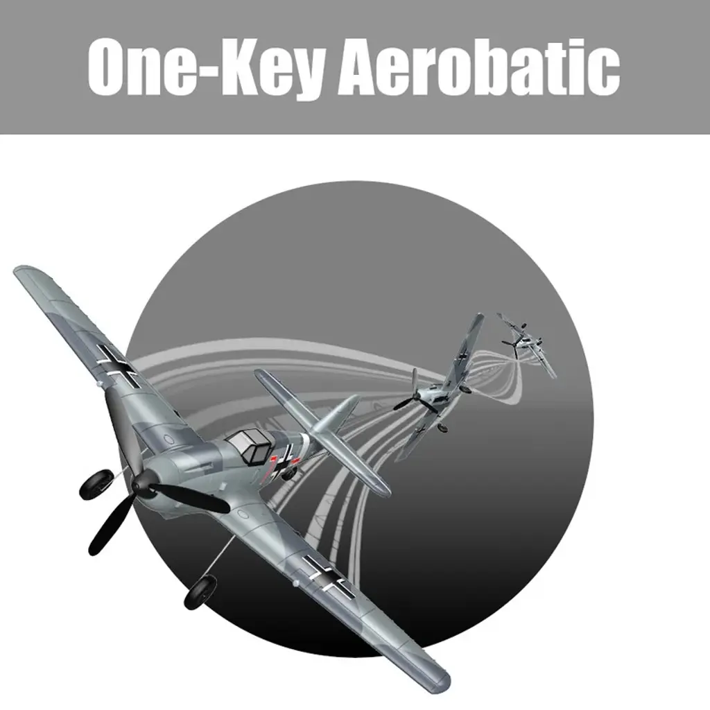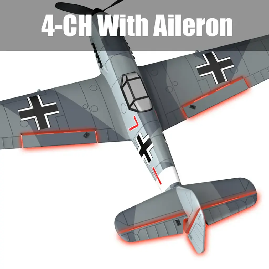 The warbird BF109 RC Airplane adopts flight control stabilization design, and the stabilization mode is defined as gyroscope flight control automatic balance mode + automatic fine-tuning attitude perception balance.For example, if the aircraft cannot maintain a stable flight after being balanced by the flight control, then the automatic fine-tuning will be performed to achieve the the best flying attitude, so that there is no need to manually adjust the fine-tuning.Therefore, the test of this mode on the ground will be different from the normal flight control balance mode on the market, because the main processing needs to monitor the attitude in real time and make fine adjustments, so you will see that the servo cannot automatically restore the balance!Description:Brand: ZOHDModel: BF109 V2Version: BNF, RTF (optional)Wingspan: 400mm (15.75 inches)Length: 317mm (12.48 inches)Flying weight: 0.1lbsMaterial: EPPMotor: 1020 Coreless MotorBattery: 3.7V 400mah 20CCharger: USB cableRemote control: 2.4GHz 4CHRemote control distance: more than 200 metersExperience level: BeginnersWhere to play: OutdoorIs Assembly required: NoFlight time: 15minsPackage included:1 x ZOHD BF109 V2 2.4GHz 4CH 400mm Wingspan 6-Axis EPP Mini RC Airplane Camouflage gray RTF with 3 Batteries