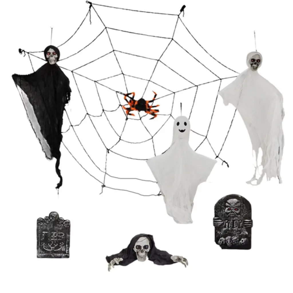 Place this Halloween decoration outside your house and watch your Halloween party guests shudder! Your front lawn will look like ground zero of the zombie apocalypse. This awesome, movie-quality prop Includes a realistic-looking zombie head, two creepy hands with sleeves, and two convenient lawn stakes. PVC and fabric. Head, 11" x 8" x 8"; hands, 9" x 5' x 2". Imported.