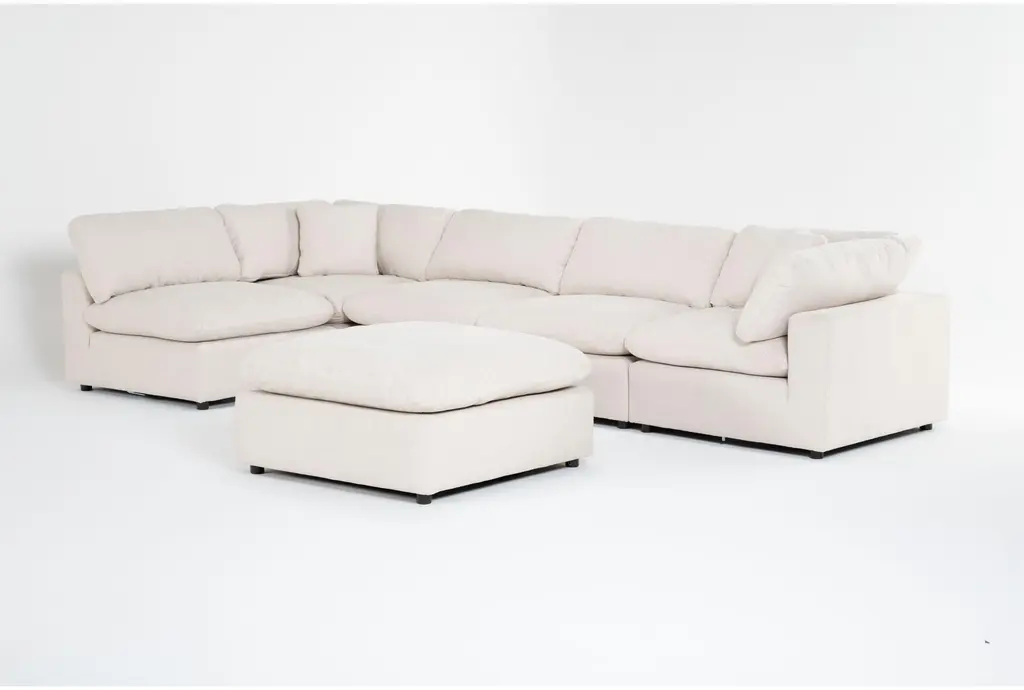 Zone Cream White Fabric 124" 6 Piece Modular L-Shaped Sectional With 2 Corners 3 Armless Chairs & Ottoman | Reversible