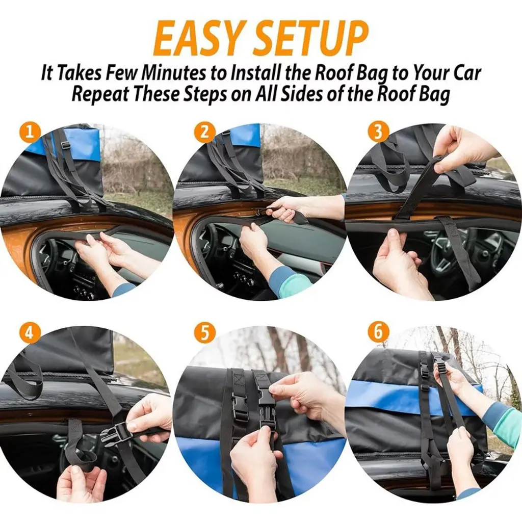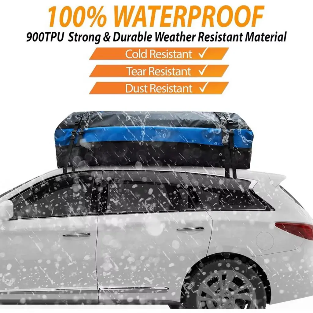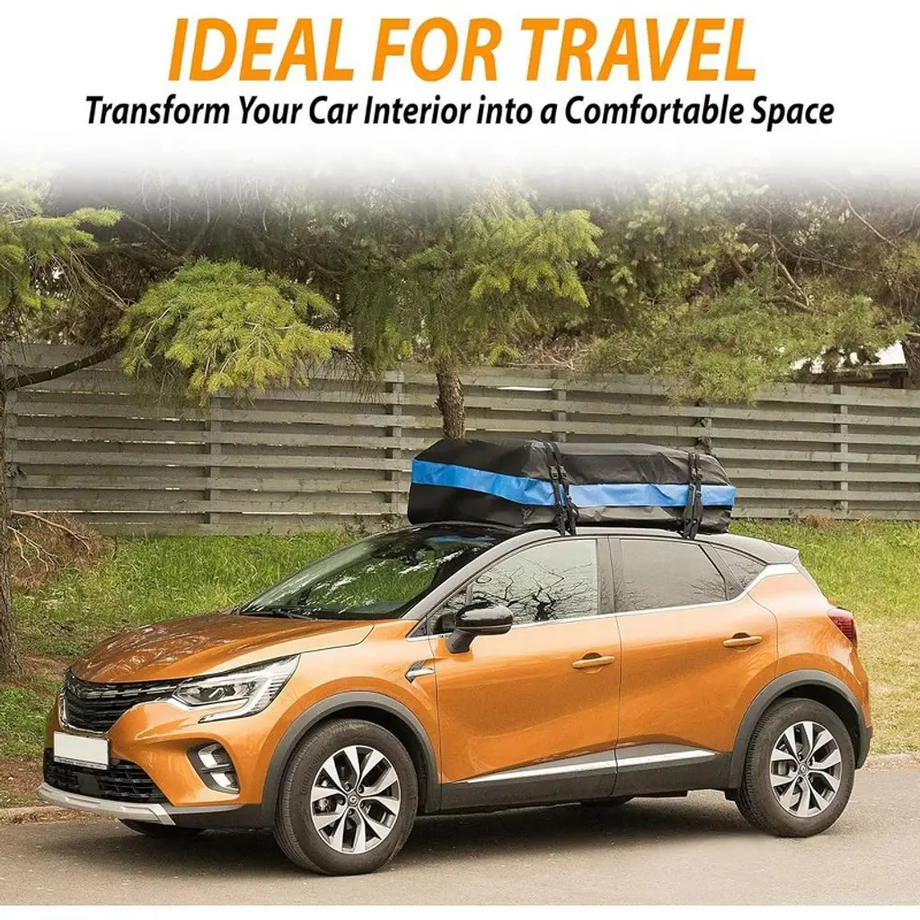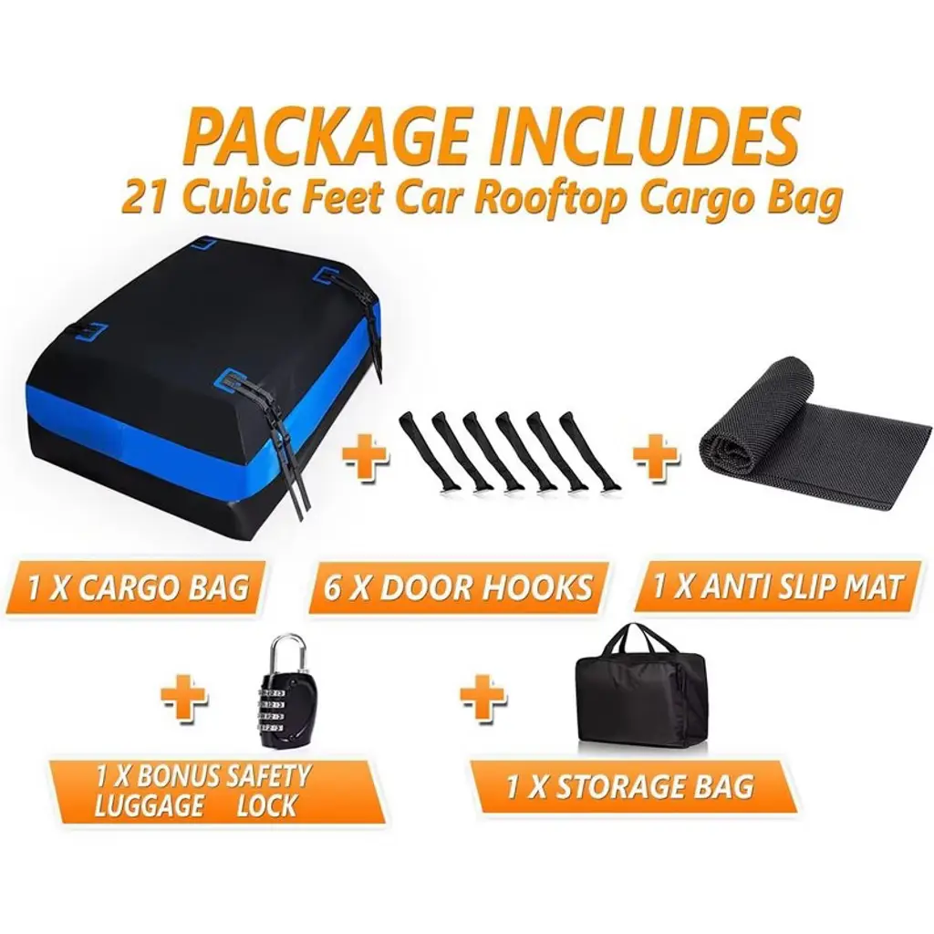 Zone Tech Car Roof Cargo Bag Protective Mat - Black with Blue Stripe Premium Quality Rubberized with A Strong Grip and Extra Cushioning Car Roof Pad Travel Easy with Zone Tech Car Roof Cargo Bag Protective Mat. Perfectly designed for for on-the-go families, adventure-seekers, or anyone just looking for some additional space while traveling. With its 21 cubic feet of space, it is possible to have Clutter-Free additional space while travelling and also keeps your car roof from scratches and damages. This is a total Must Have for drivers & travelers alike. 100% Weather and Water Proof. The car roof protective mat is made with High Grade rugged water resistant, thick webbing foamed rubber while the cargo bag is made from Premium Quality rubber laminated nylon to ensure maximum Strength and Durability. The generous size assures pad fits most vehicles. You can have it folded for double protection; Or cut it to a custom size to fit into your vehicle's roof. The cargo bag is equipped with attachment capabilities on all four sides for secure attachment. The car roof protective mat is not only limited to car roof cargo but can also be used on the trunk. You can also cut it into smaller pieces and use it on your home as place mat for your things. Zone Tech Brand is known worldwide with superior product quality and service!