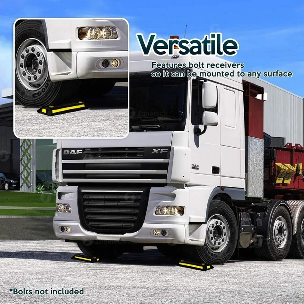 Zone tech Heavy Duty Rubber Parking Guide - 2 Pcs Premium Quality Durable Car Garage Wheel Stopper Park with Confidence with the Zone tech Heavy Duty Rubber Parking Guide. This helps you when to stop your car for parking. Putting your mind at Ease and gives you no trouble to adjust your car. The parking guide is made from Premium Quality thick rubber to give maximum strength and durability for long-lasting usage. It is Rock Solid but never harmful to car wheels. Equipped with High visibility Reflective Safety Tape to help you park at night. The rubber parking guide has built-in bolt receptacles to make it easy for you to install the guide anywhere for long term use, Bolts included Now you can easily park in your favorite parking spot with help of Zone Tech Parking guides available in 1,2 and 4 packs.
