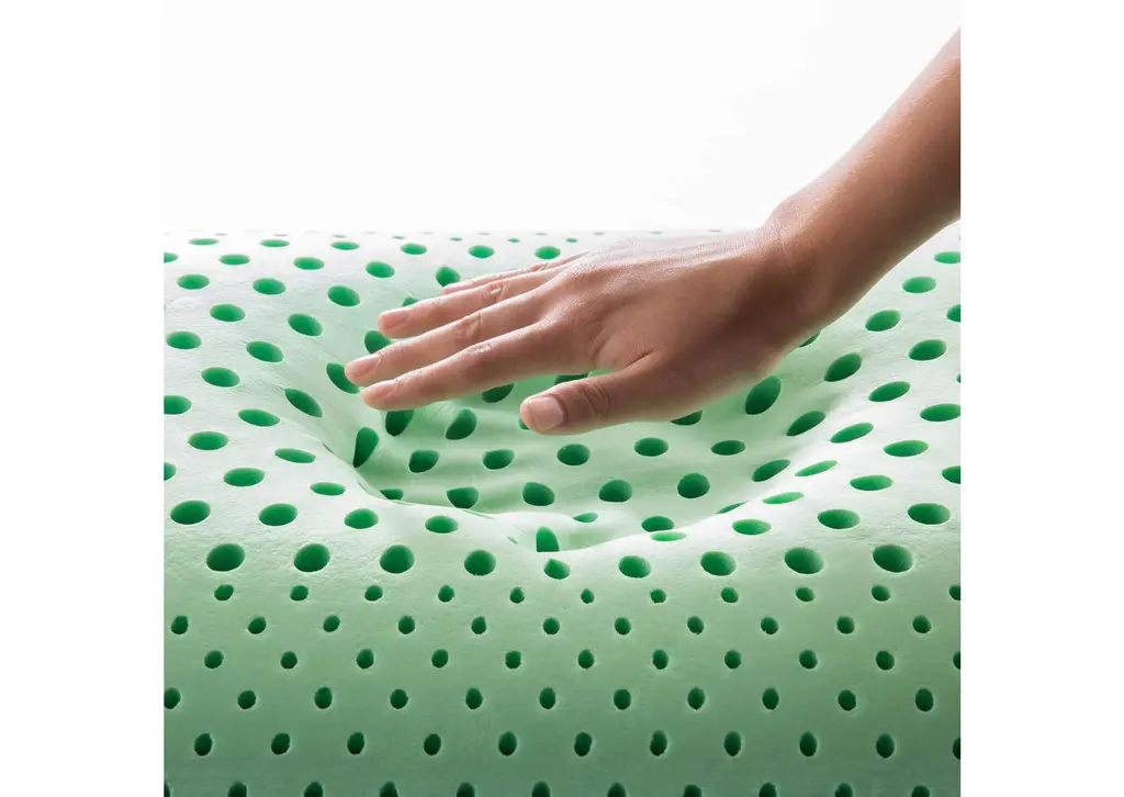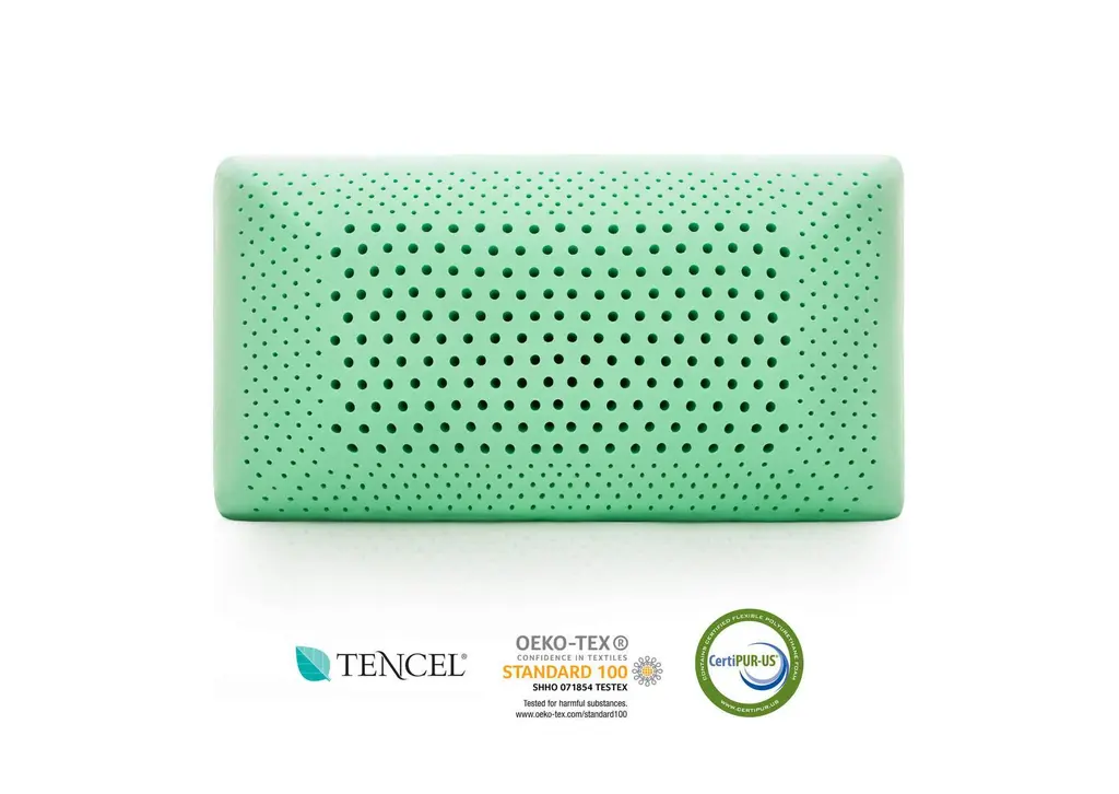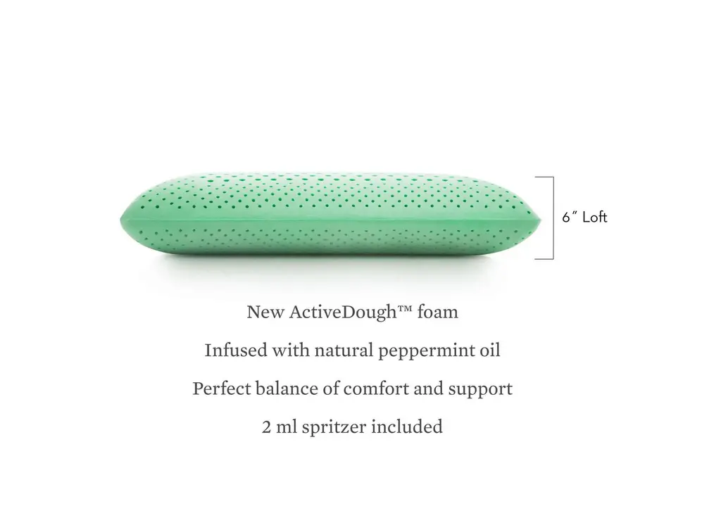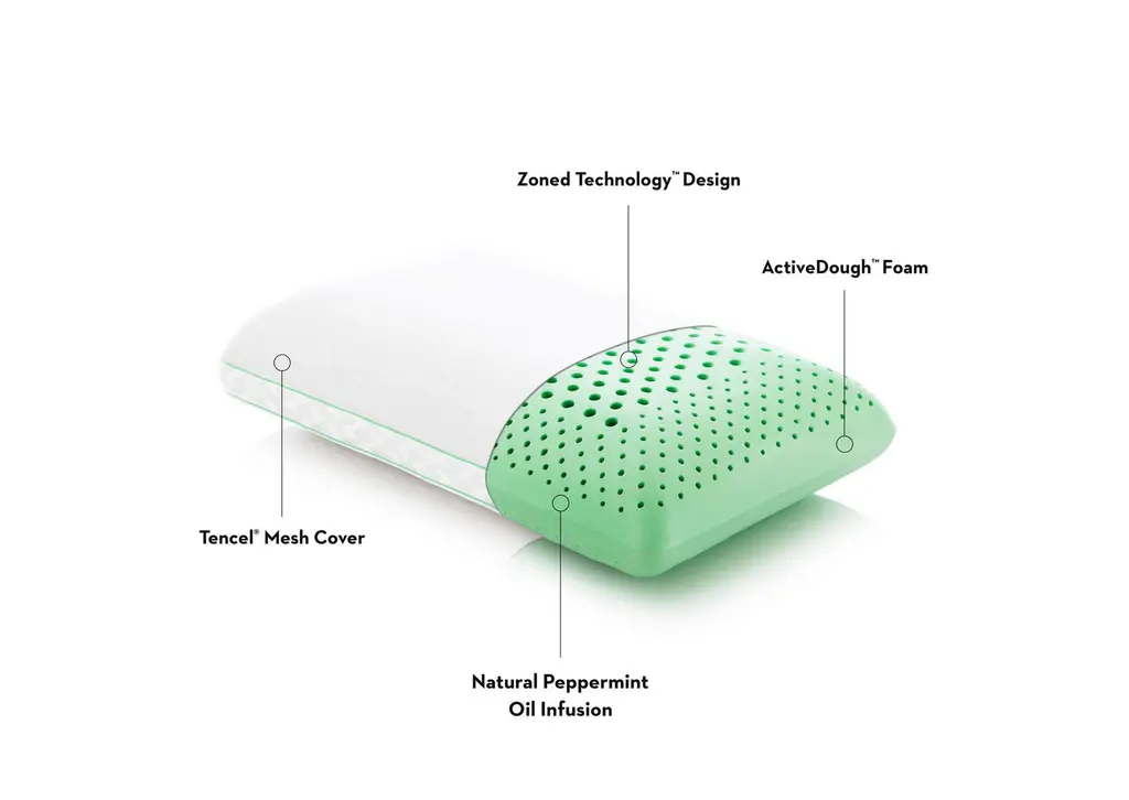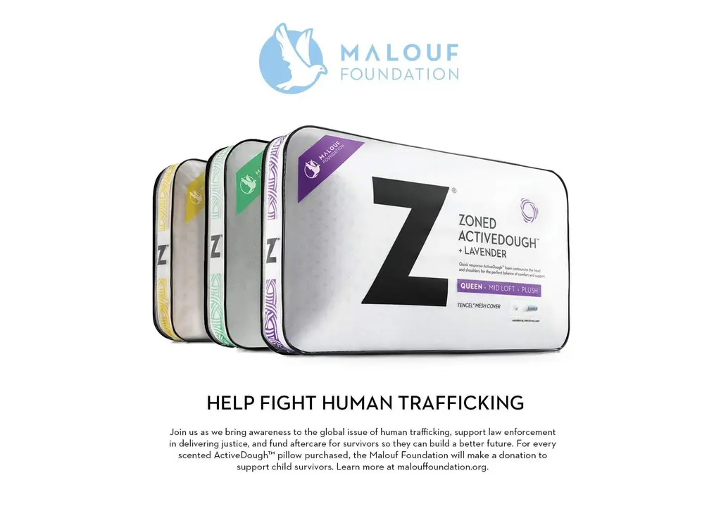 New ActiveDough™ foam offers the quick-response feel and superior support of latex, plus the just-right cushion and contouring relief of memory foam for a unique feel that is loved by sleepers of all styles and preferences. Infused with all-natural peppermint oil, this rejuvenating pillow provides a clean and refreshing scent that promotes clear breathing and a calm sleep environment. Designed with zoned technology to relieve pressure points, this pillow has larger holes in the center of the pillow to cradle your head and smaller holes around the perimeter to support your neck. This silky soft pillow is topped with a breathable Tencel® mesh cover that regulates temperature for all-season comfort. For every pillow purchased, the Malouf Foundation will make a donation to support child survivors of sex trafficking because we believe every child deserves freedom, justice, dignity, and a safe home. Weight 21.700 lbs. (9.77kgs.)