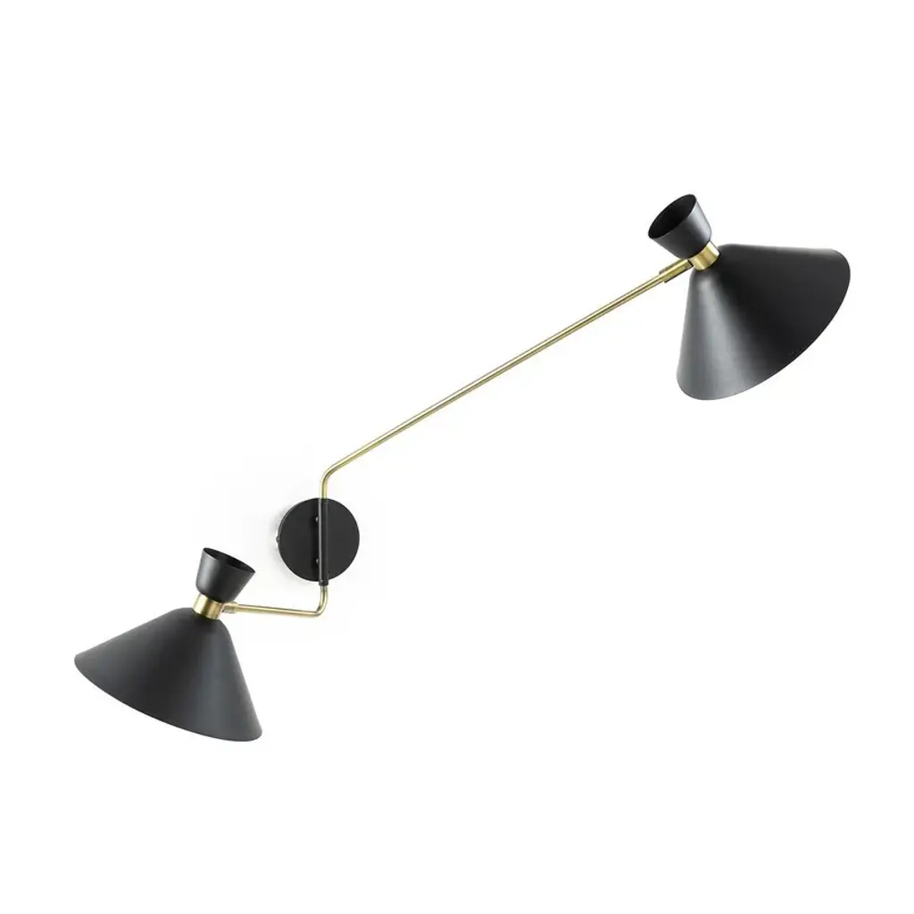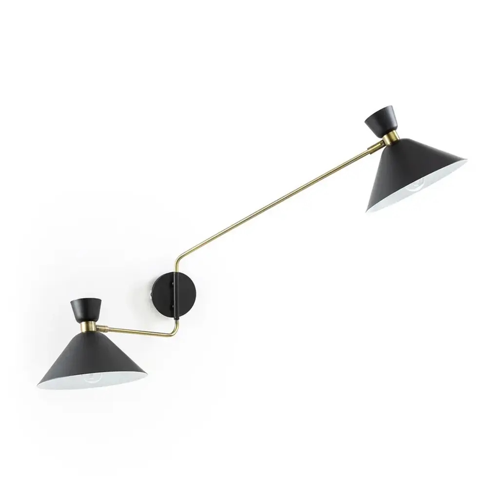 Zoticus is distinguished by its 1950s design updated with a combination of black metal and brass. Decorative and functional, its swivelling diffuser provides targeted lighting ideal for a reading space.Metal epoxy finish and bras2 E14 lamp holders for energy-saving bulb 8W max, not suppliedCompatible with energy class A, B, C, D, E bulbs