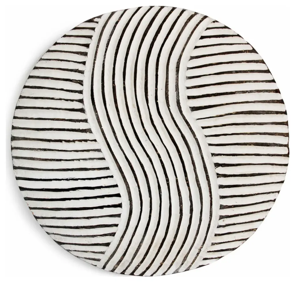 Traditional South African Zulu shields date back to King Shaka Zulu and have been used by tribesman in battle for hundred of years. As the modern world has evolved so to has the Zulu tribesman. These shields are no longer used in battle but instead used for traditional Zulu ceremonies such as weddings in telling historic ancestry stories. These carved wood designs painted in bold black and white patterns continue to have a striking modern form displayed in groupings. Comes with hook attached on back for hanging on wall. This item is non-returnable - all sales are final.