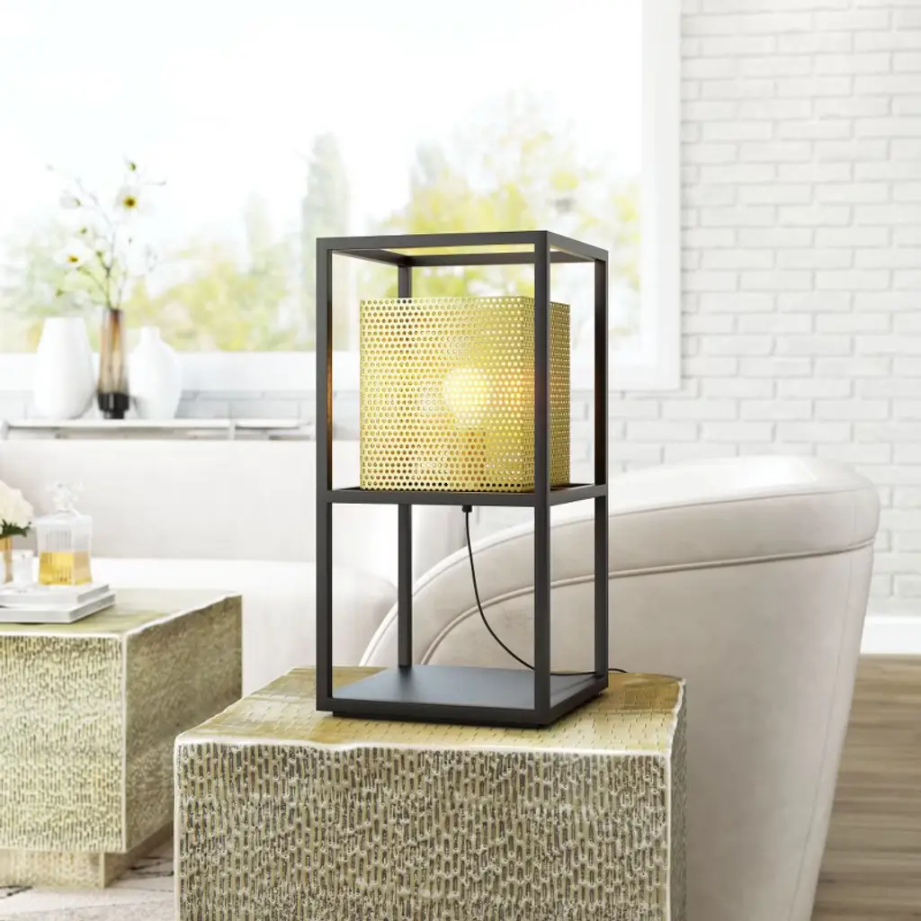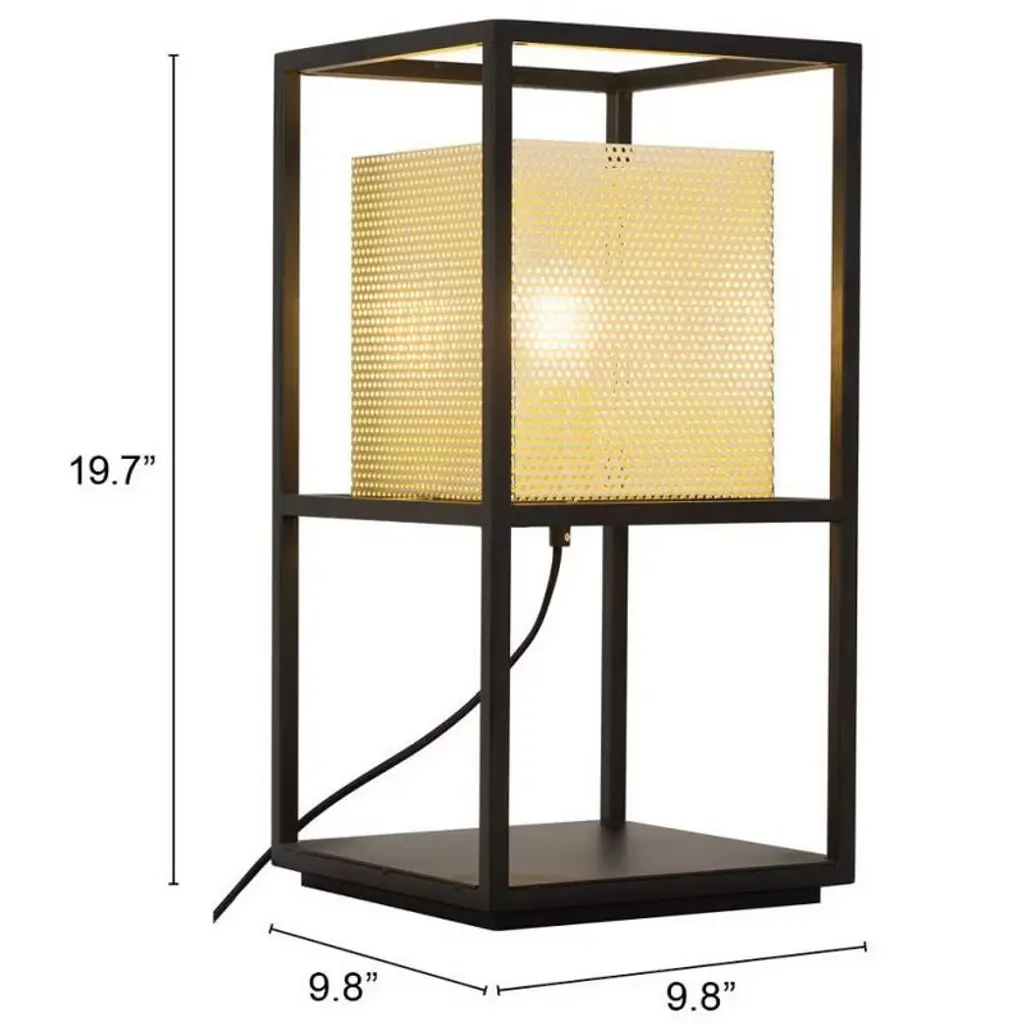 The Zuo Modern Yves Table Lamp brings a touch of contemporary glam to any living space. Crafted from durable steel with a sleek gold and black finish, this lamp features a perforated shade that creates ambient, visually striking lighting. Perfect for tables, nightstands, or accent surfaces, its 19.7-inch height ensures it fits seamlessly into a variety of spaces. The lamp’s compact 9.8 × 9.8 × 9.8-inch base allows for easy placement, while its unique perforated design adds a modern, artistic touch to your décor. Ideal for bedrooms, offices, or living rooms, the Yves Table Lamp is both a functional light source and a decorative statement piece. Key Benefits Functional and stylish: Provides ambient lighting while elevating decorVersatile placement: Fits on tables, nightstands, or accent surfaces (H × W × D: 19.7 × 9.8 × 9.8 in)Unique design: Perforated steel shade adds modern, eye-catching textureDurable construction: Powder-coated and electroplated steel ensures longevityCustomizable lighting: Works with dimmers for mood control (bulb not included)Compact footprint: Small base maximizes usable tabletop space