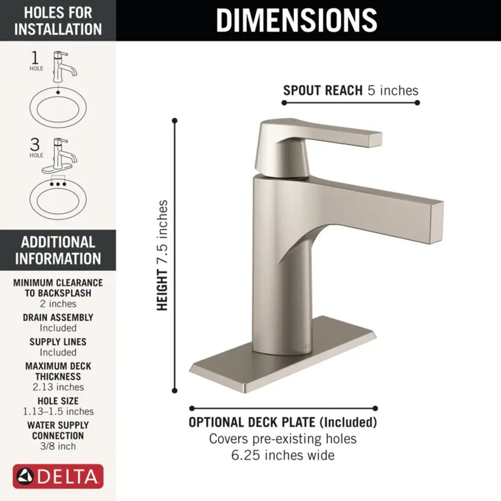 The Zura® design is a precise marriage of rounded, rectangular, and triangular elements and offers innovative, geometric styling for your bath. Delta® faucets with Diamond Seal® technology perform like new for life with a patented design that reduces leak points, is less hassle to install, and lasts twice as long as the industry standard. Delta WaterSense® labeled faucets use at least 20% less water than the industry standard — helping you save water without compromising performance. You can install with confidence, knowing that Delta faucets are backed by our lifetime limited warranty.