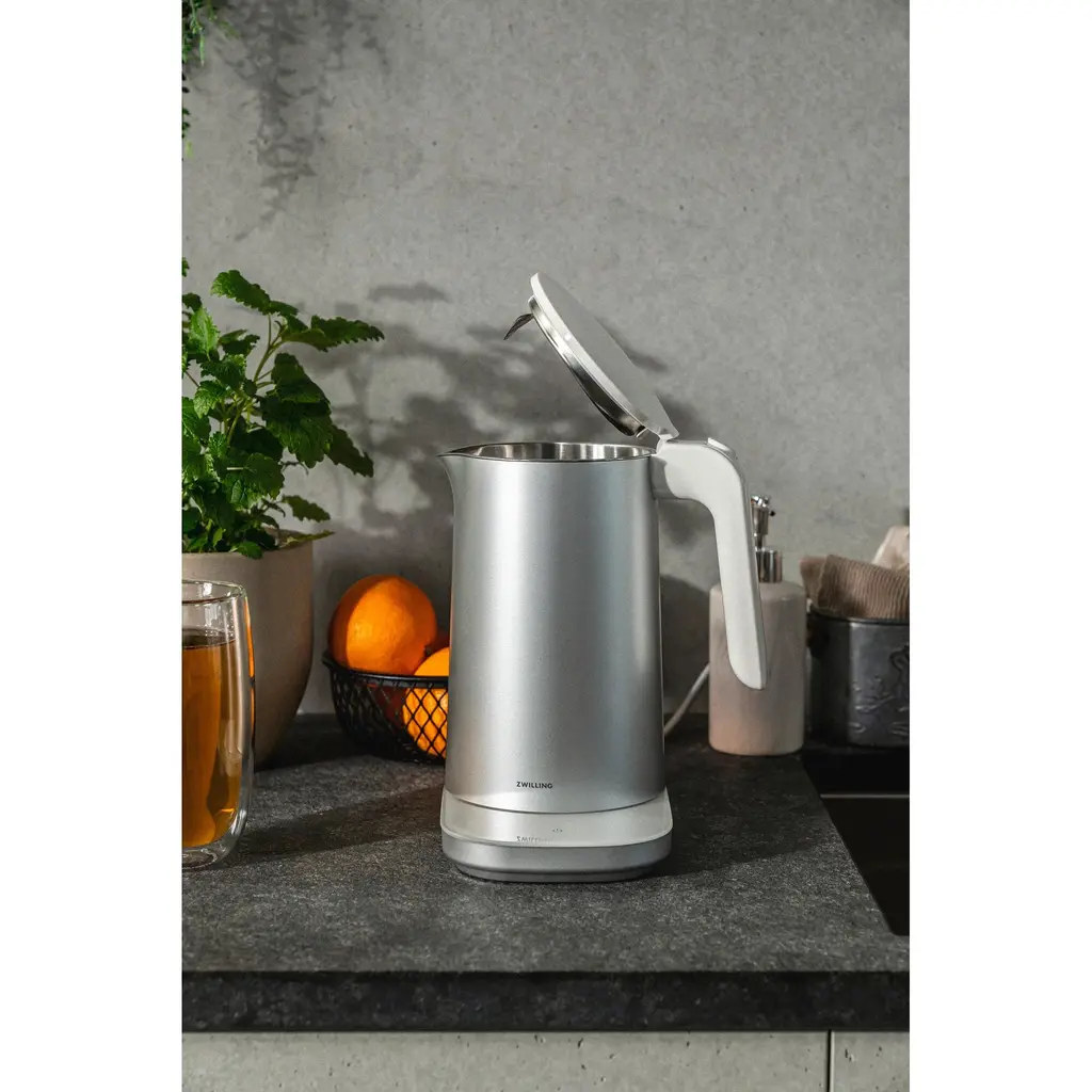 ZWILLING ENFINIGY is the revolutionary electrics line that mixes German engineering and innovation with a fresh, sleek design. This gorgeous line combines modern aesthetics with high-performance features and the longest warranties in the industry.Pour yourself the perfect cup with our thermal kettles. Our double-walled, stainless-steel kettles are cool to the touch and feature a seamless stainless-steel lining, making them exceptionally hygienic. The Kettle Pro offers precise temperature control, 6 pre-set temperature programs, and a 30-minute keep-warm function.
