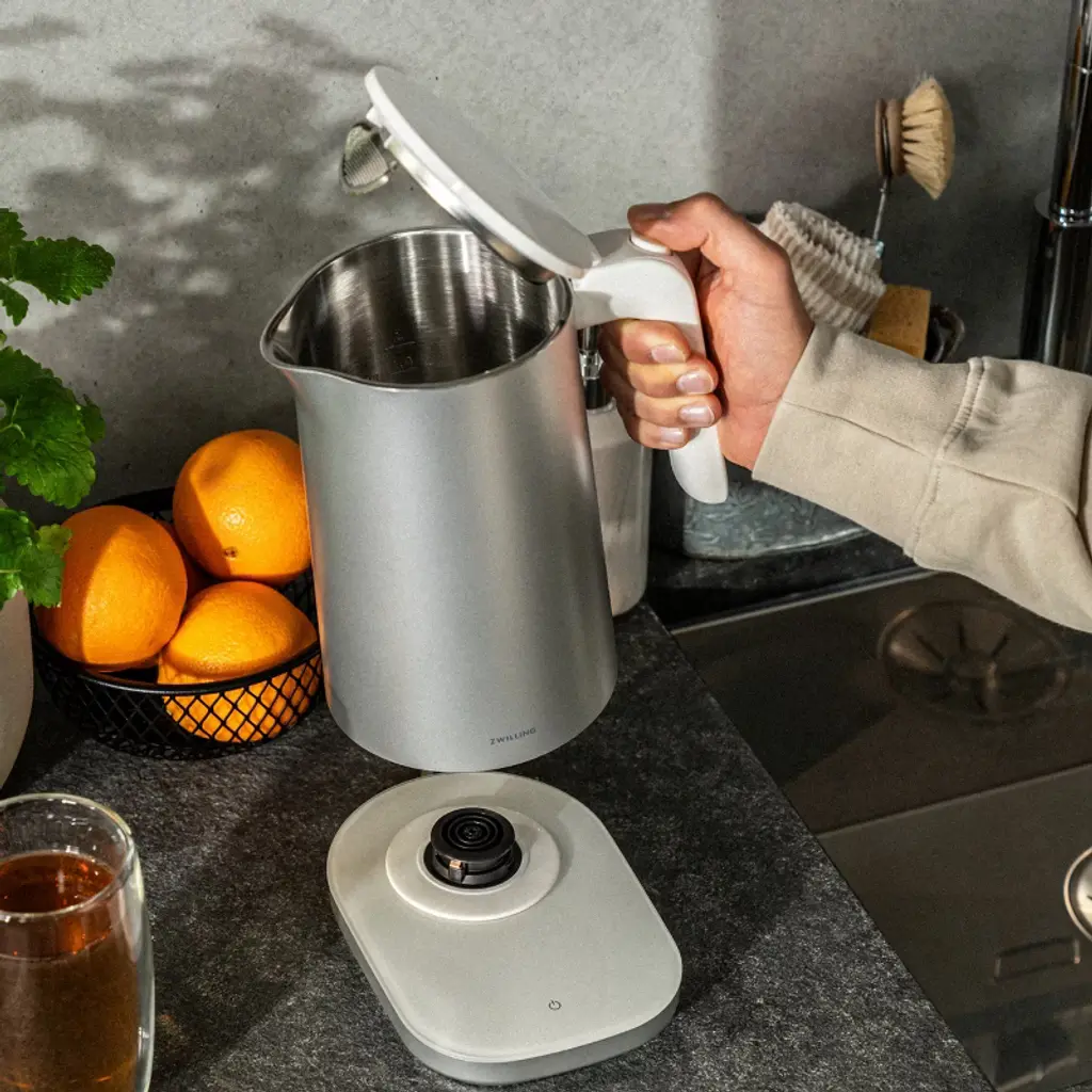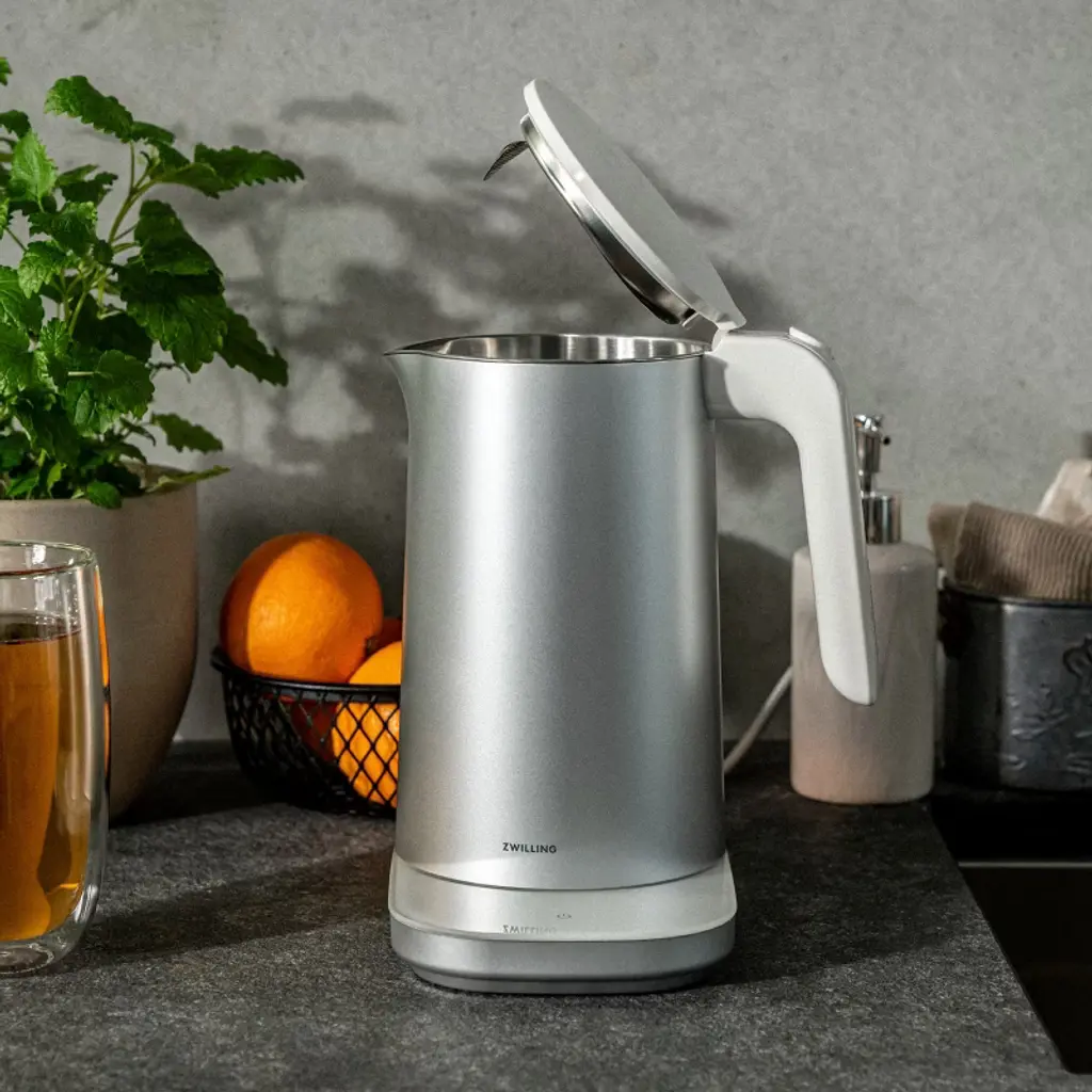 ZWILLING ENFINIGY is the revolutionary electrics line that mixes German engineering and innovation with a fresh, sleek design. This gorgeous line combines modern aesthetics with high-performance features and the longest warranties in the industry.Pour yourself the perfect cup with our thermal kettles. Our double-walled, stainless-steel kettles are cool to the touch and feature a seamless stainless-steel lining, making them exceptionally hygienic. The Kettle Pro offers precise temperature control, 6 pre-set temperature programs, and a 30-minute keep-warm function.