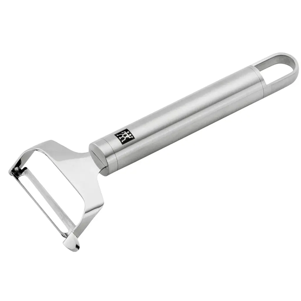 Peeling is a frequent cooking task - and one that's particularly easy with the right kitchen gadget. The series Y-peeler with a diagonal blade is ideal for long, thin vegetables and its ergonomic design makes the task much easier. The swivel design allows the twin blade to safely move over a wide range of vegetable shapes and peels in both directions. The vegetable peeler's design is perfectly adapted to the task: The blade slits are positioned to prevent the peel from becoming caught up and adjust to any kind of vegetable. However, the series doesn't only focus on unconditional functionality. The uniform design language of the series means that all the kitchen gadgets visually complement each other to create a harmonious overall impression. The premium quality stainless steel is hygienically designed to avoid any unnecessary seams. This means that the diagonal Y-peeler is dishwasher-safe, sturdy, durable, and corrosion-free.