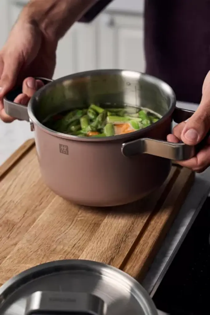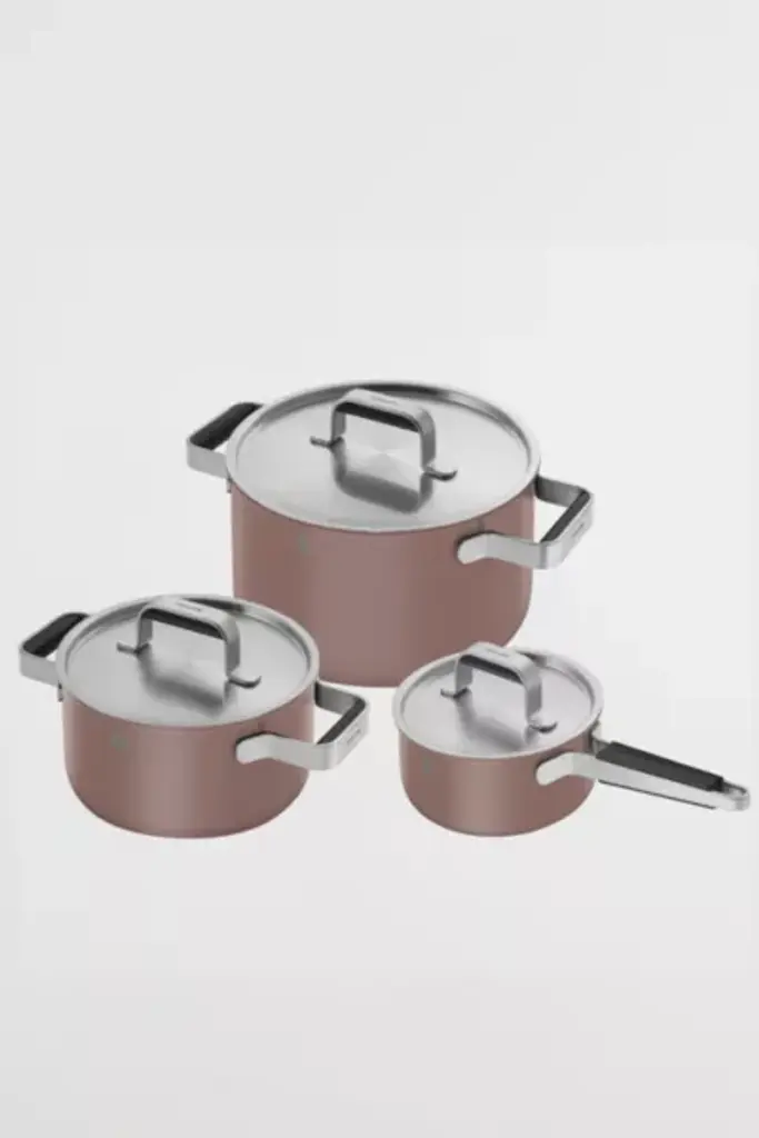 Personalize your space and get creative in the kitchen with colorful, thoughtfully designed cookware. Infuse color into your kitchen with ZWILLING Pure Stainless-Steel cookware and ceramic nonstick Fry Pans. Designed to inspire creativity in the kitchen, ZWILLING Pure features a retro-yet-modern design with refined details, available in elegant, matte-finish hues. Enjoy quick heating and hot-spot free cooking thanks to the tri-ply stainless steel construction and thick aluminum core. **Content & Care** \- Set includes: 1.6-quart saucepan with lid, 3-quart stew pot w/ lid, 6-quart Dutch oven w/lid \- Durable, exterior ceramic coating \- Tri-ply stainless-steel construction from rim to rim \- 18/10 stainless-steel interior will not discolor or corrode \- Thick aluminum core for exceptional heating \- Comfort-grip handles with silicone padding \- Contemporary stainless-steel lid design \- Interior capacity markings for accurate measuring \- Easy to clean, no-rivet handles are securely welded \- Compatible with all stovetops, including induction, and oven safe up to 350°F Dishwasher safe