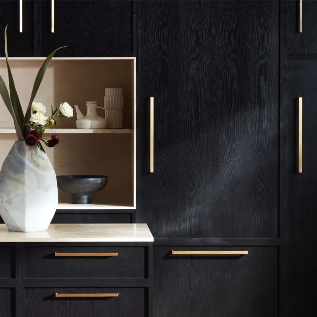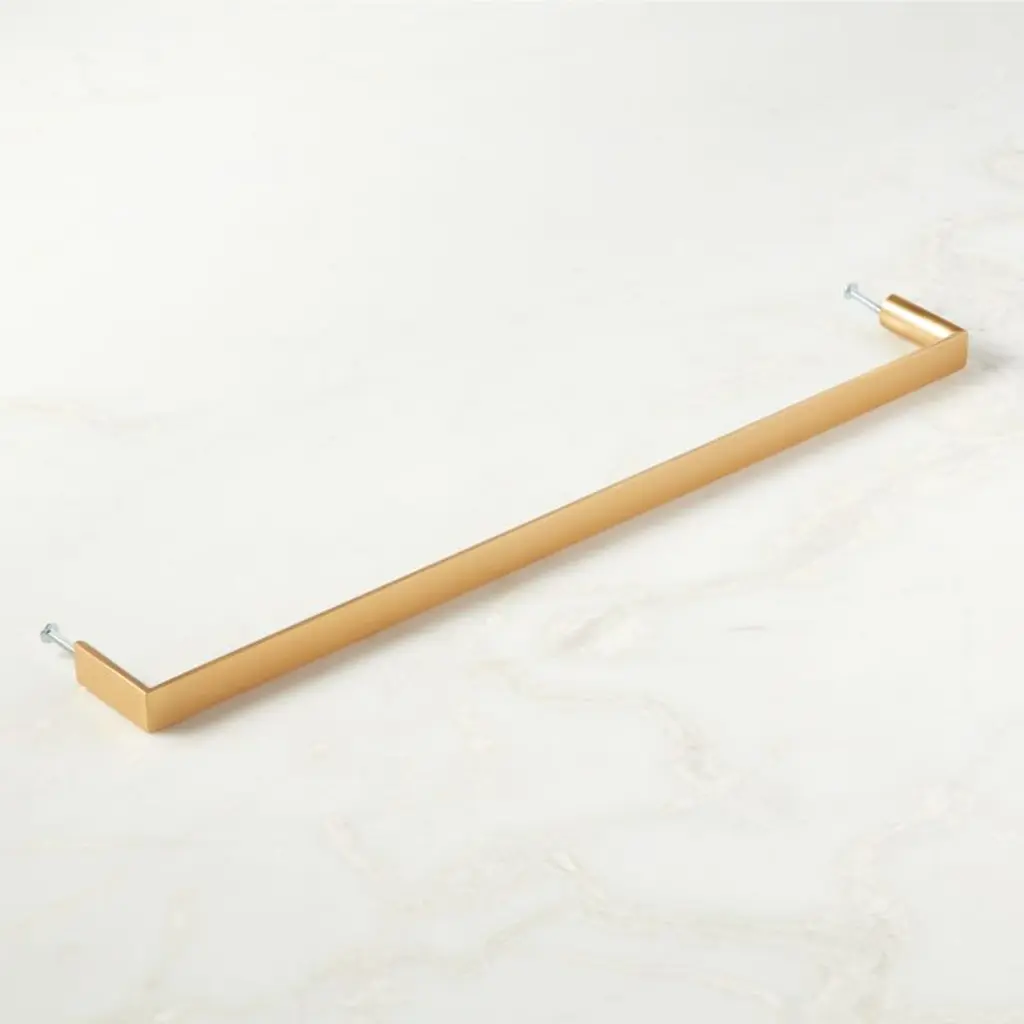 Appliance pull by Barcelona-based Mermelada Estudio sports sleek lines and subtle curved design details crafted of solid brass. Pair with the Damon knobs and handles for an upscale look seen in custom-designed kitchens. CB2 exclusive.
