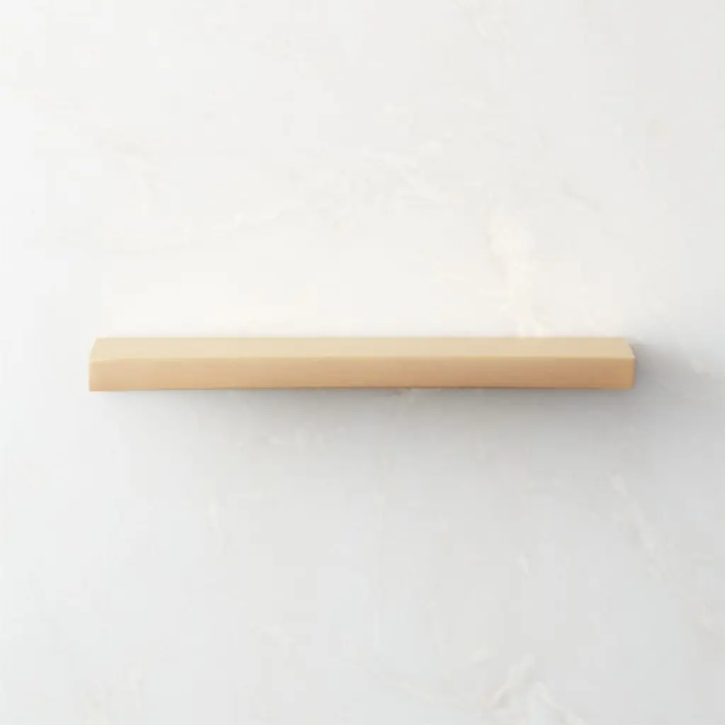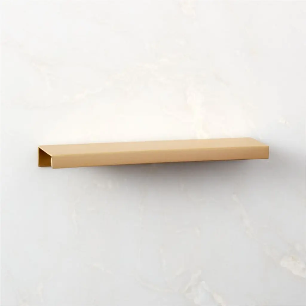Drawer edge pull by Barcelona-based Mermelada Estudio sports sleek lines and subtle curved design details crafted of solid brass to elevate any space. Pair with the Damon knobs and appliance pulls for an upscale look seen in custom-designed kitchens. CB2 exclusive.