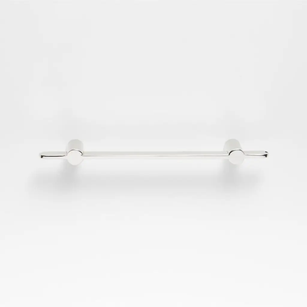 Sometimes it's the small things that pull a room together. That's why we've designed a hardware collection with modern silhouettes, clean lines and a touch of tradition to give your kitchen and bathroom that perfect finishing touch. Inspired by vintage faucet knobs, this unique pull intersects two cylindrical posts with a flat, rounded-end bar. The four-inch brass pull has a shiny chrome finish for a chic and charming look. Hardware is included to make it easy to refresh the look of dresser drawers, cabinet doors and vanities.