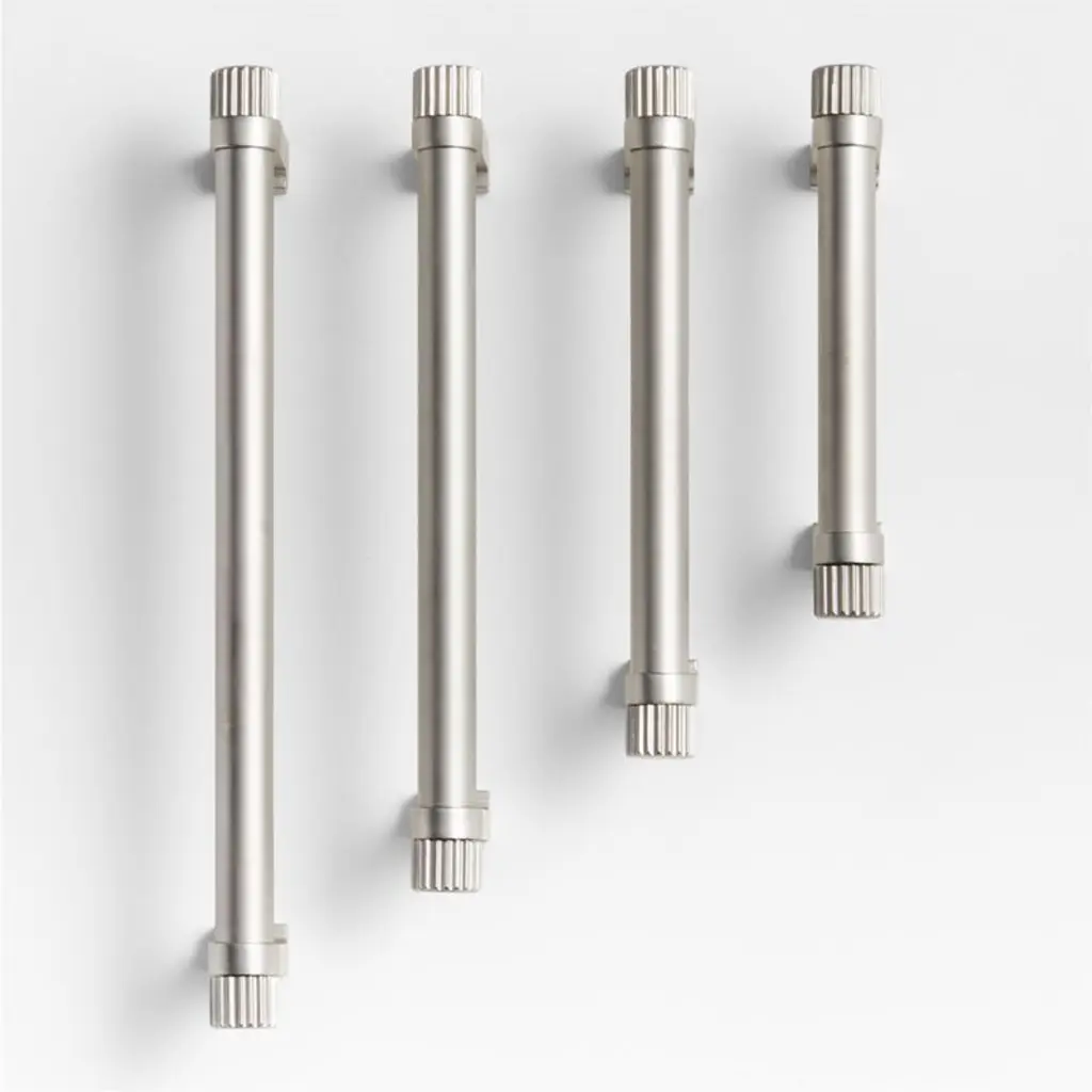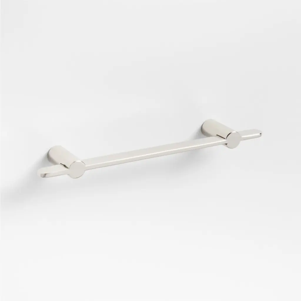 Sometimes it's the small things that pull a room together. That's why we've designed a hardware collection with modern silhouettes, clean lines and a touch of tradition to give your kitchen or bath that perfect finishing touch. Made of brass finished in brushed nickel, the drawer pull lends industrial chic to its minimalist design. Fluted ends bring texture to the round pull that's held in place by L-shaped anchors softened with rounded edges. The three-inch drawer pull easily fastens to drawers and doors with included hardware.