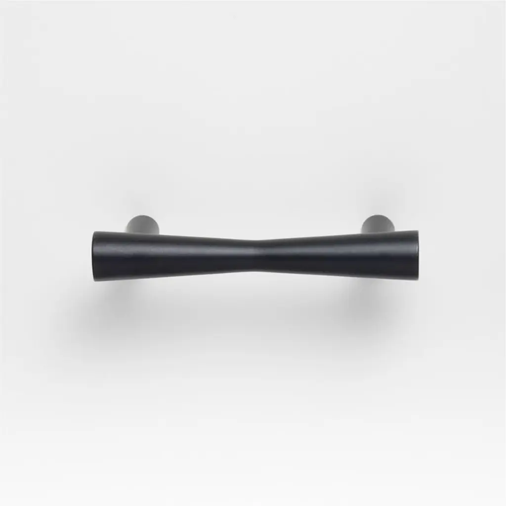 Sometimes it's the small things that pull a room together. That's why we've designed a hardware collection with modern silhouettes, clean lines and a touch of tradition to give your kitchen and bathroom cabinets that perfect finishing touch. Made of brass with a chic matte black finish, the stylish bar pull gently tapers into a super-subtle hourglass shape. Minimalist cylinder posts elevate the pull for a comfortable handhold. The three-inch pull is easily installed on cabinet doors and dresser drawers with included hardware.