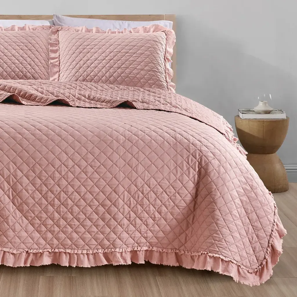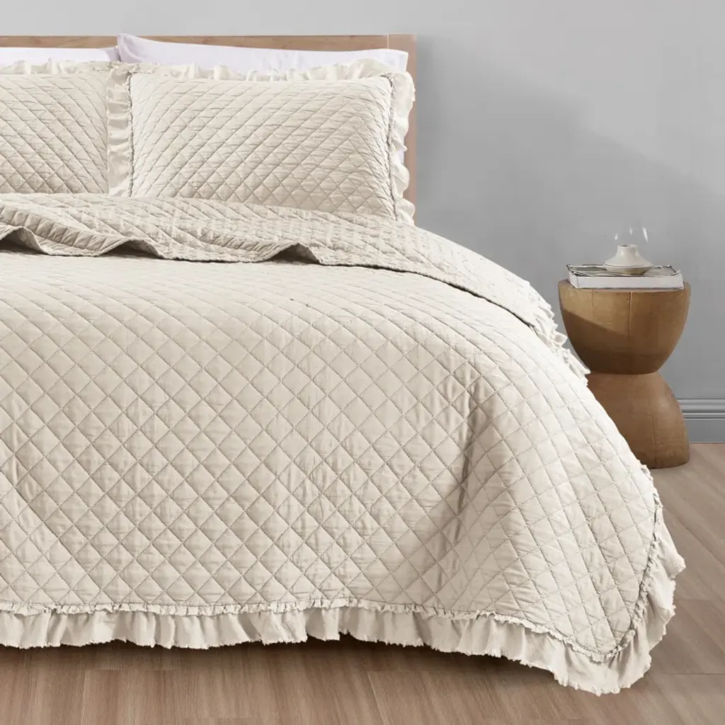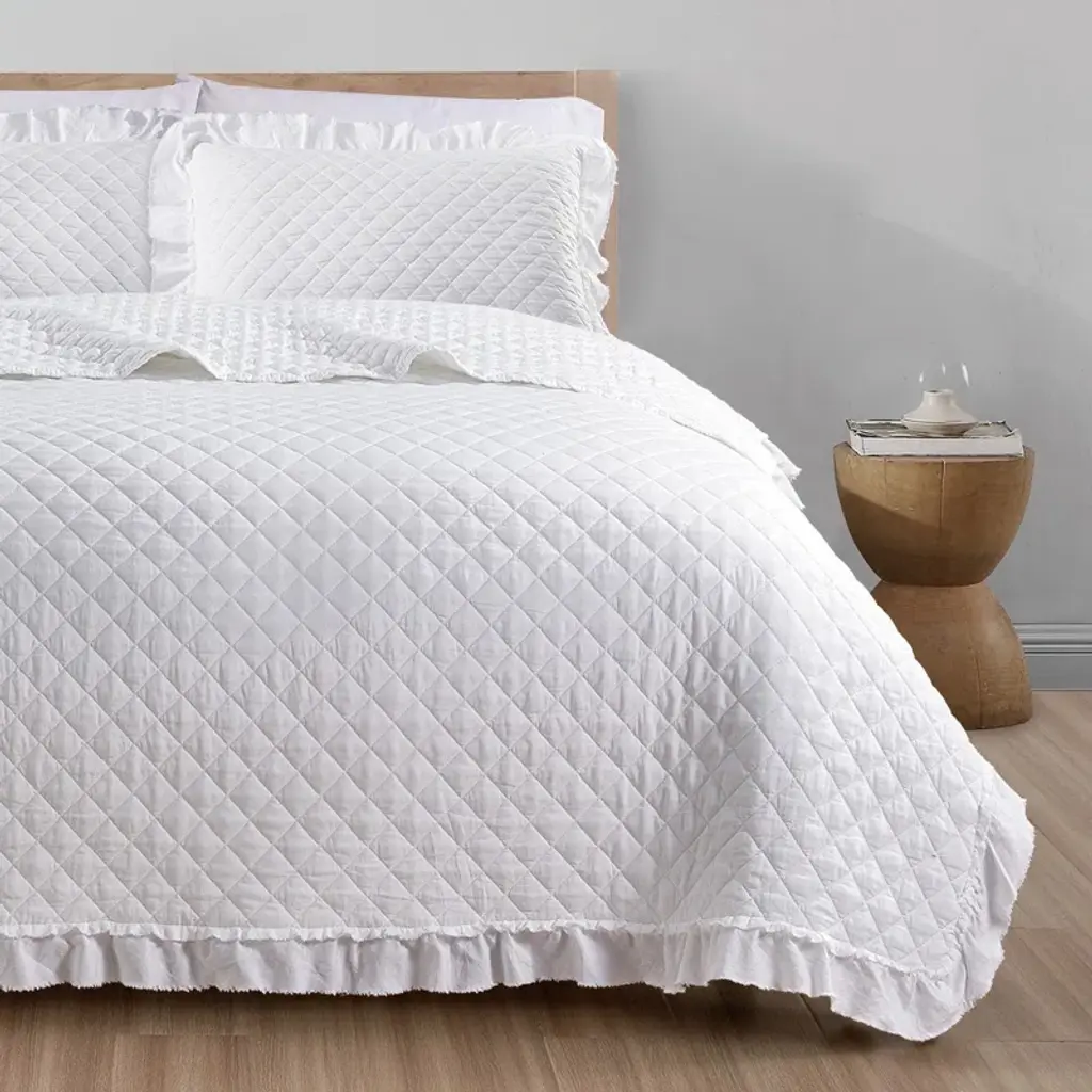 Bashira Diamond Ruffle Stonewash Embroidered Quilt Set