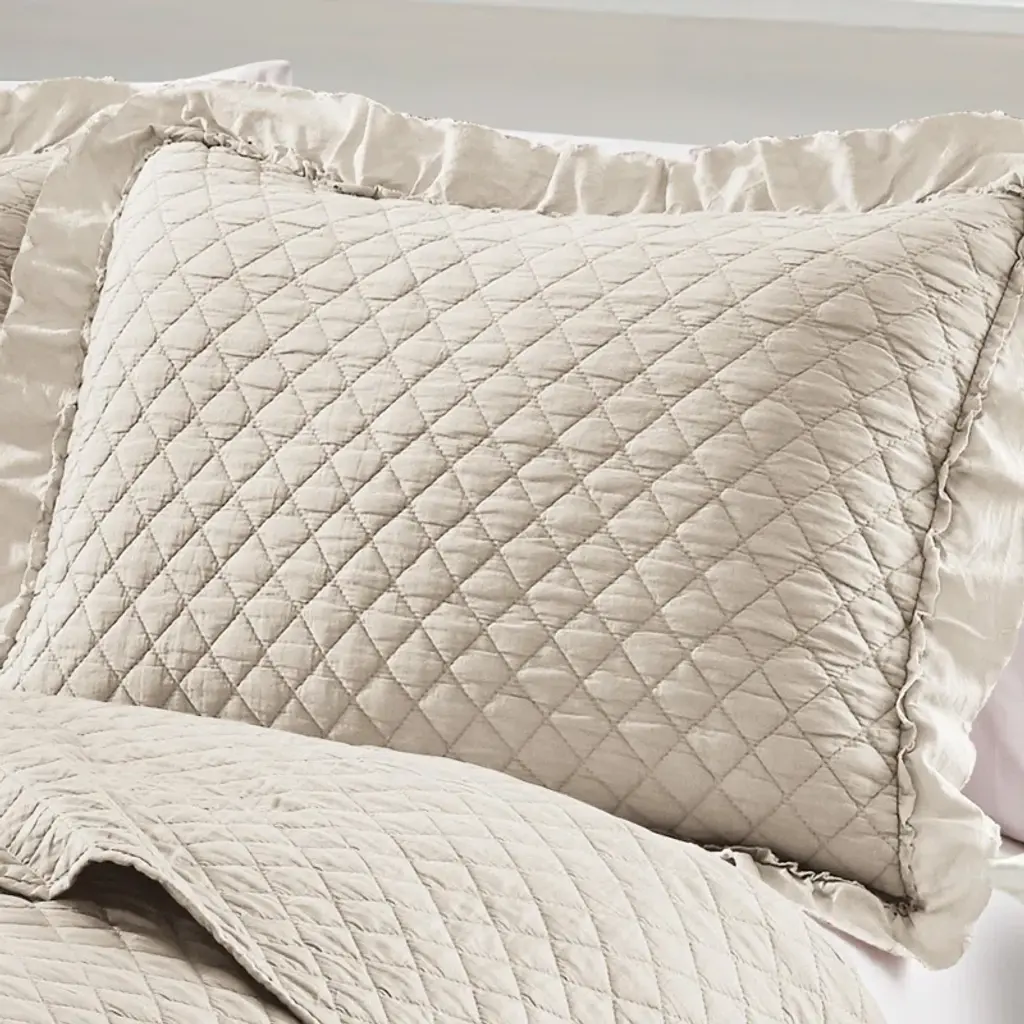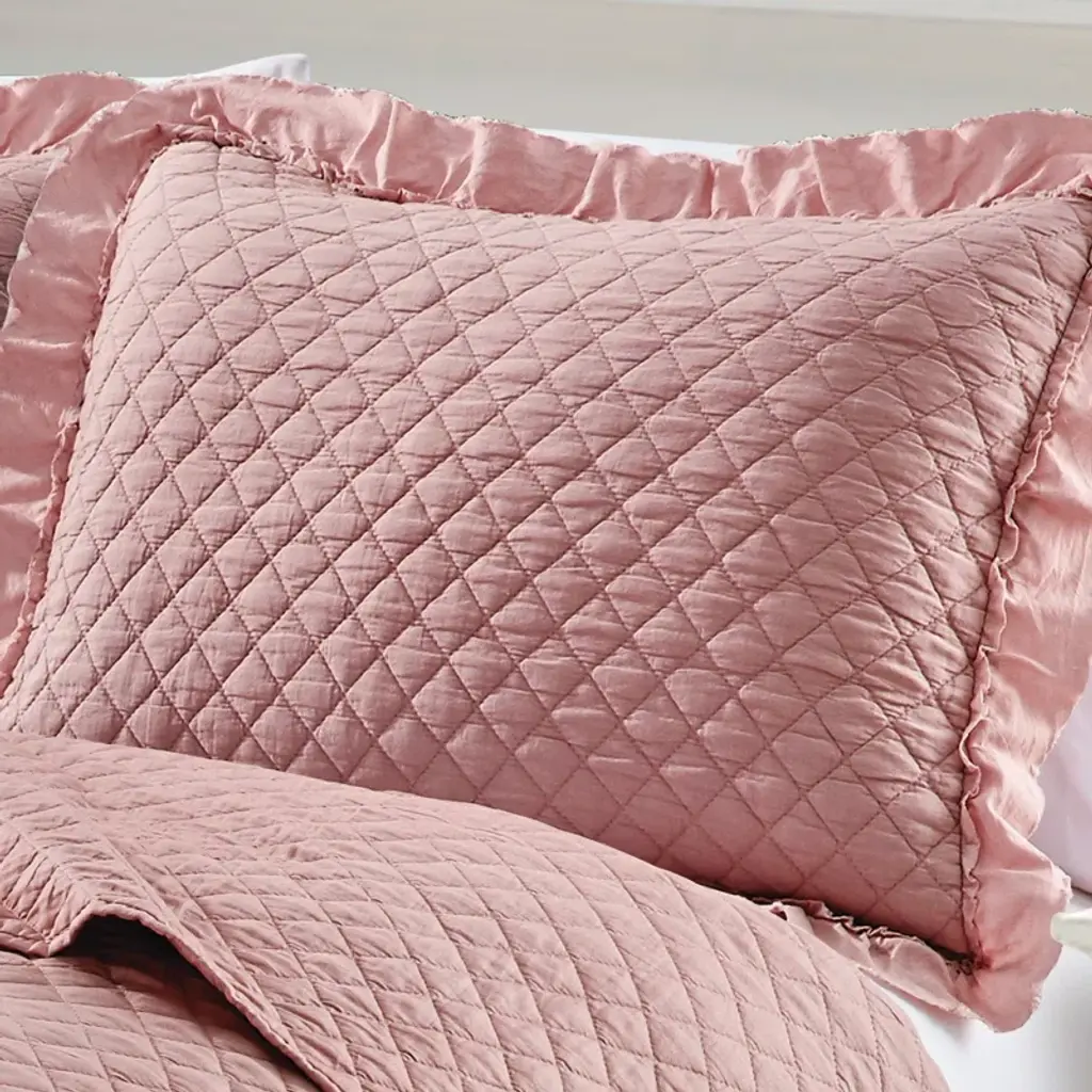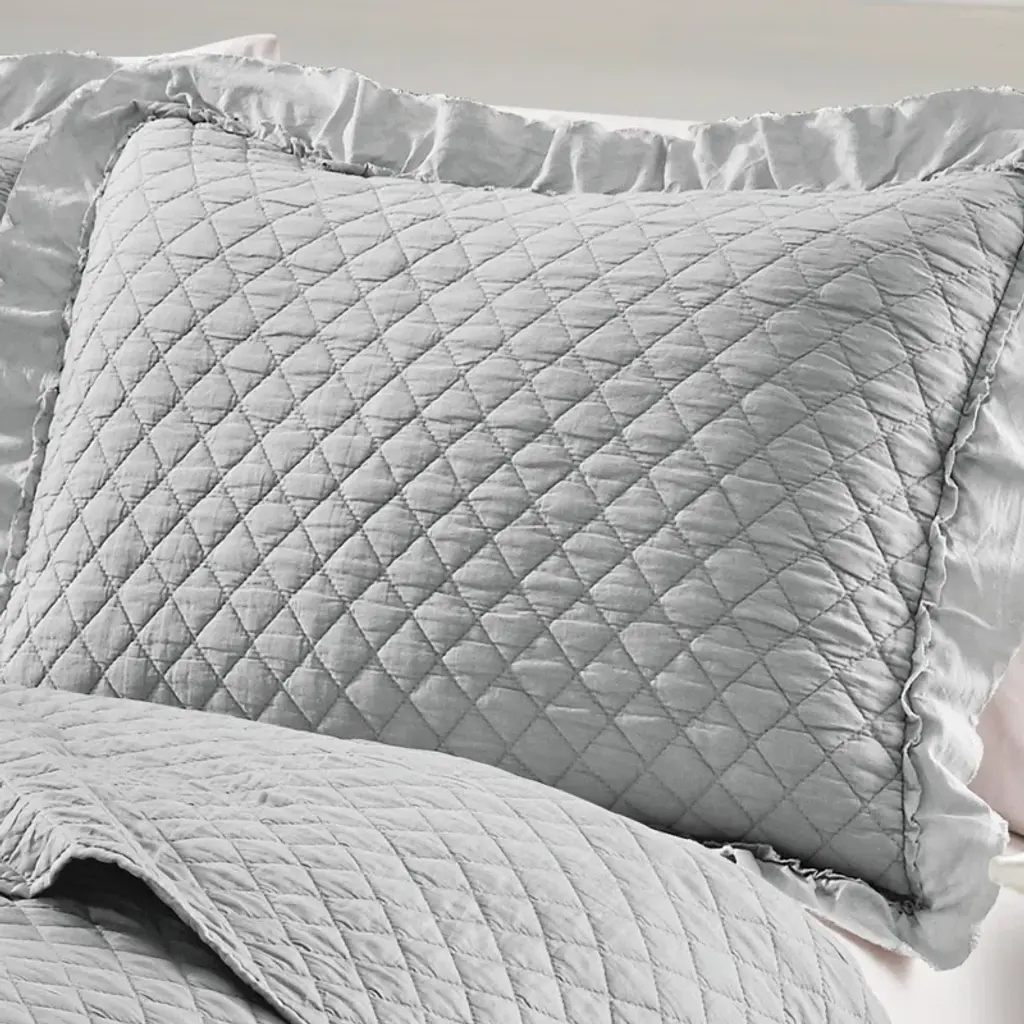 Bashira Diamond Ruffle Stonewash Embroidered Quilt Set