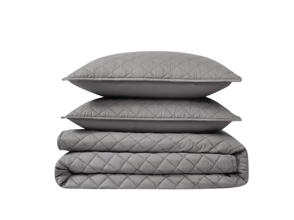 Most comforter sets are not designed for todays larger beds and leave your mattress exposed. Get a true fit on your king or queen size mattress with luxurious sized comforter that provides a drop to cover your extra thick mattress. Cannon's solid cotton percale bedding collection is the ideal combination of luxury and durability. Offered in multiple colors, this bedding set will work with any bedroom and style. The tight percale weave in 100% cotton fiber produces a soft and smooth fabric with breathable cotton threads. Adding texture to the quilt is a diamond stitching with a two inch flange. This high quality quilt set has a thread count of 200 and is made to impress. The all season 100% down alternative fiber filling is just the right weight for all seasons. You can rest assured this program is made responsibly with OEKO-TEX Standard 100 Certification with certificate 14.HIN.38767 as certified by Hohenstein.