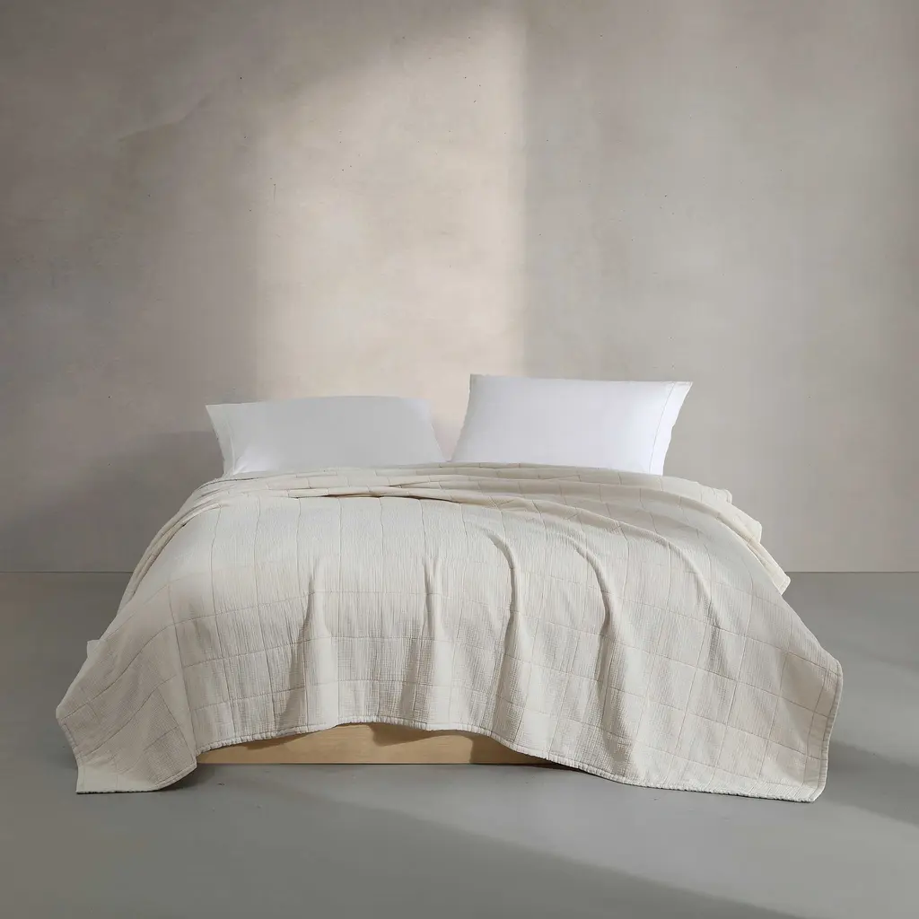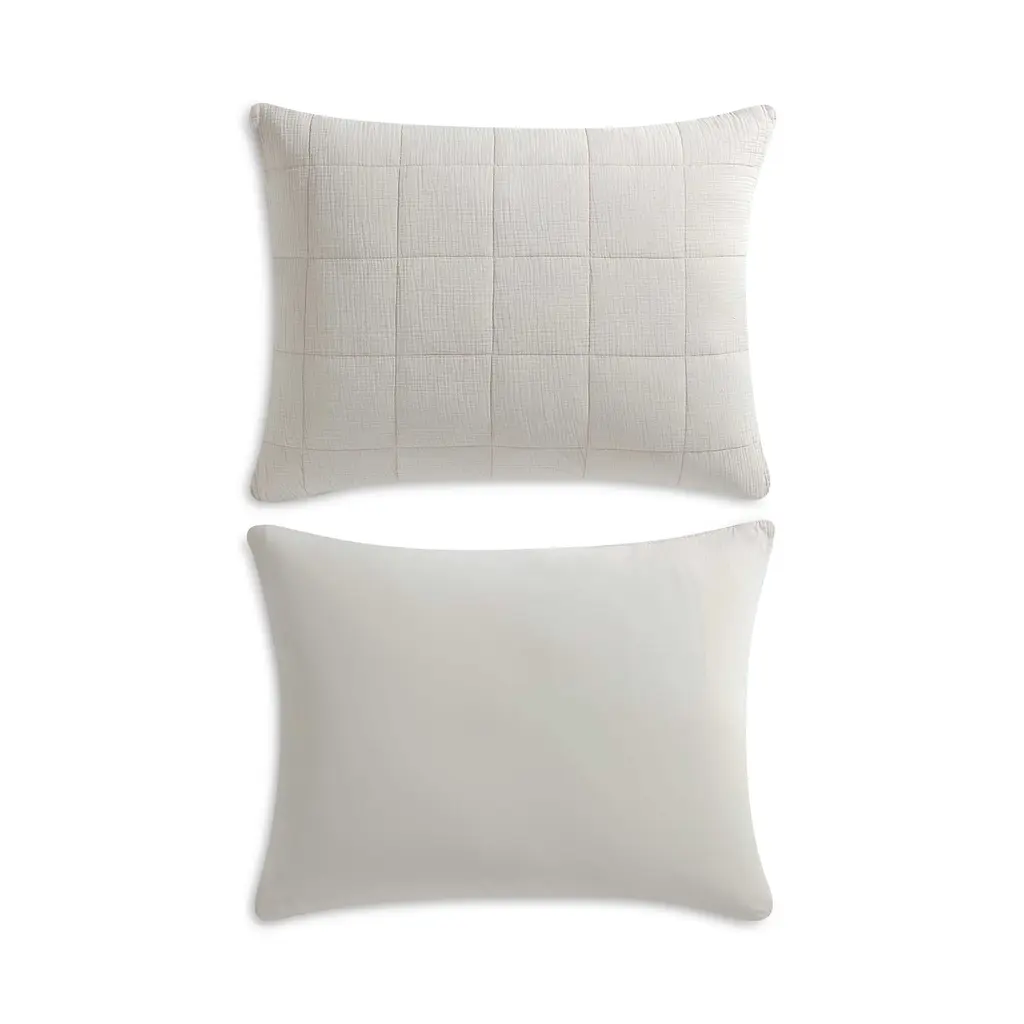 The cotton gauze quilt set embodies the effortless sophistication of Calvin Klein. Made from 100% cotton in a breathable double-weave gauze, it's paired with a plain cotton reverse for a soft, lived-in feel. Light and airy, it delivers relaxed comfort with a refined edge. The quilt features a clean box-stitch design and is filled with polyester for a layer that's both cozy and stylish.